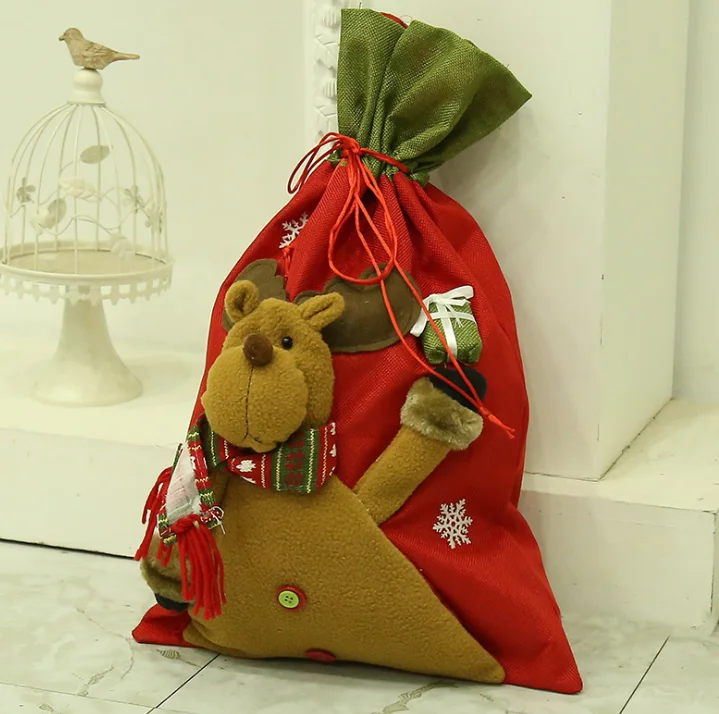 1 шт. большой 3d рюкзак Санта Клауса праздничная подарочная сумка Рождественские украшения льняные сумки с куклой 33 см * 55 см