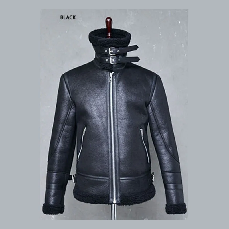 Мужская зимняя куртка из искусственной кожи с меховым поясом, пальто из овчины с высоким воротом, шерстяная подкладка, топы с длинным рукавом, мужские кожаные куртки-бомберы, зимние пальто