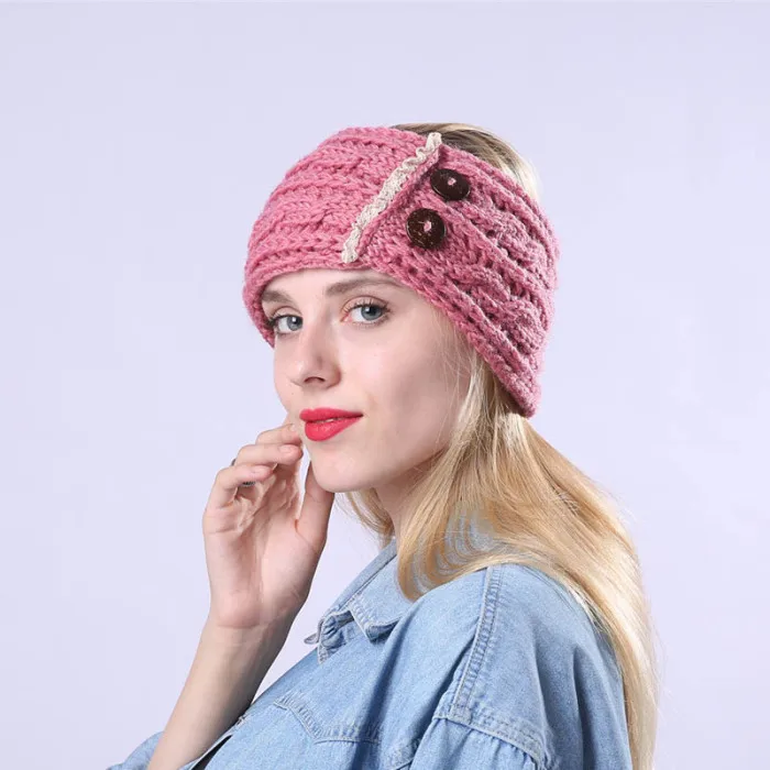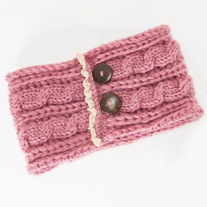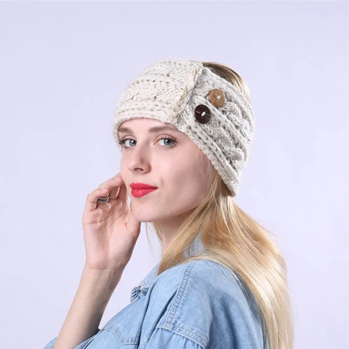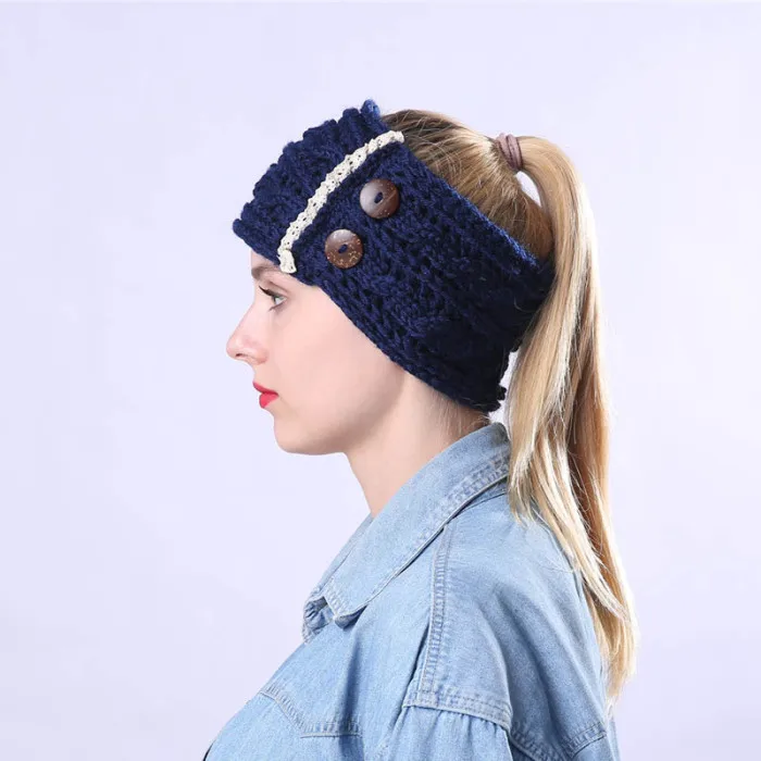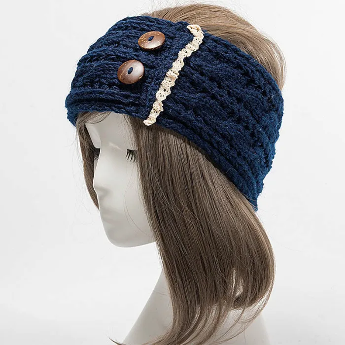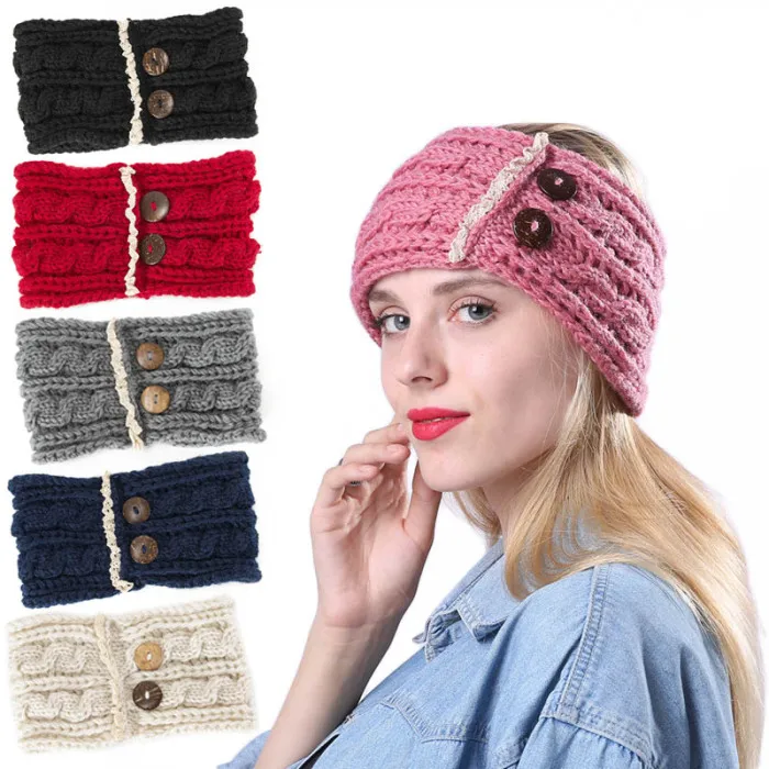 Новые женские зимние теплые вязаные повязки на голову с пуговицами, вязаные крючком Толстые эластичные повязки на голову IR-ing