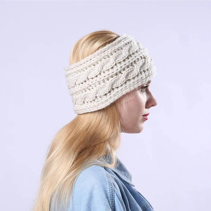 2. Толстая и Уютная теплая повязка на голову с обрезными ушами, Очаровательная страна. Шикарный вязаный крючком узел в центре.