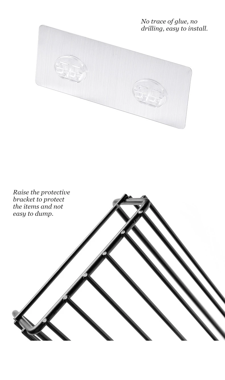 1. Без следов клея, без сверления, легко установить. 2. Поднимите защитный кронштейн, чтобы защитить детали и не легко свалить.