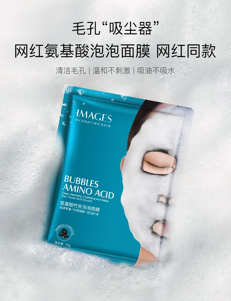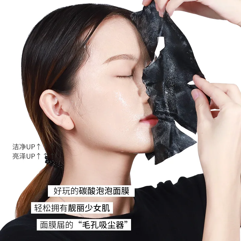 Изображения Детокс кислородная пузырьковая маска корейский лист косметический для лица отбеливающая Маска увлажняющий крем бамбуковый уголь черный
