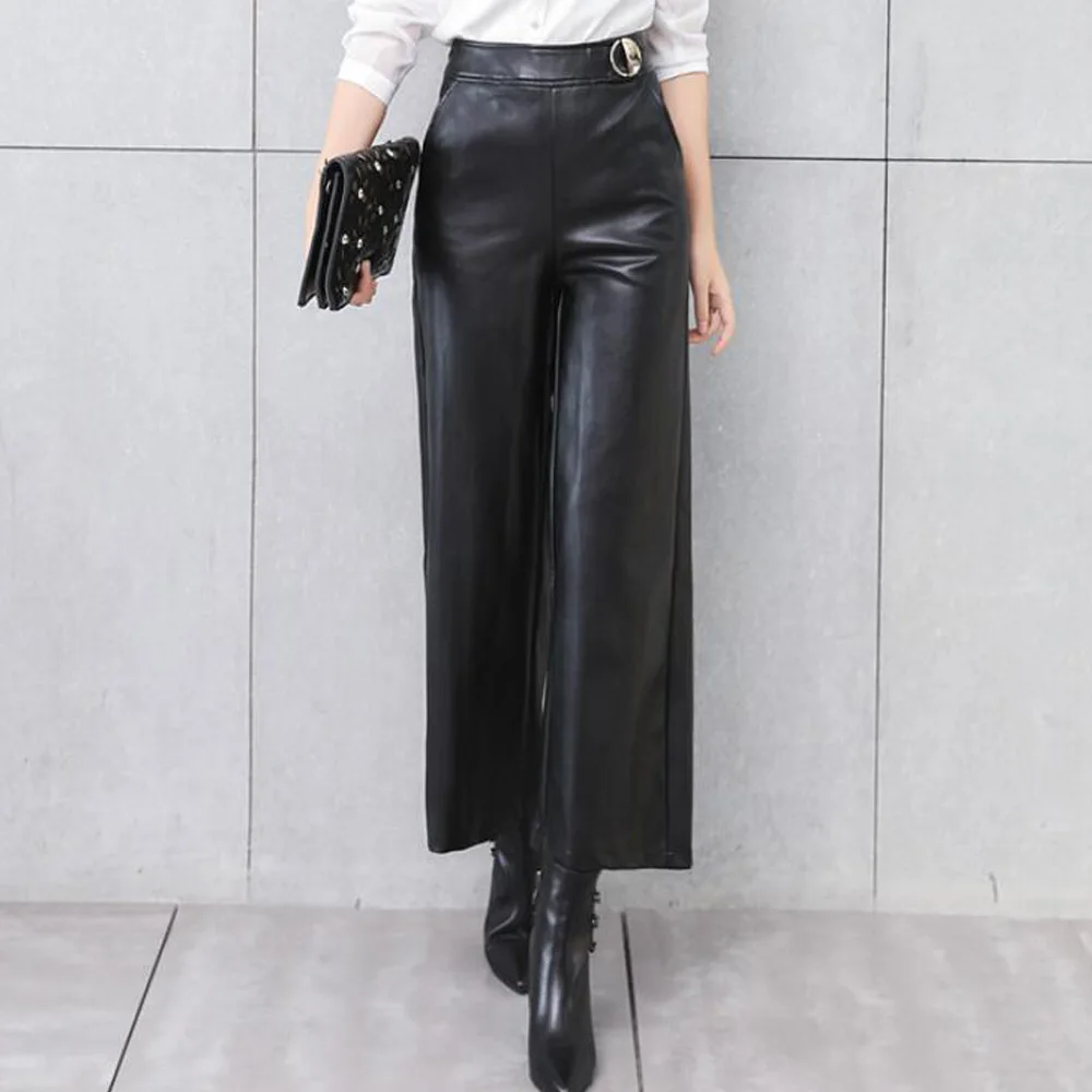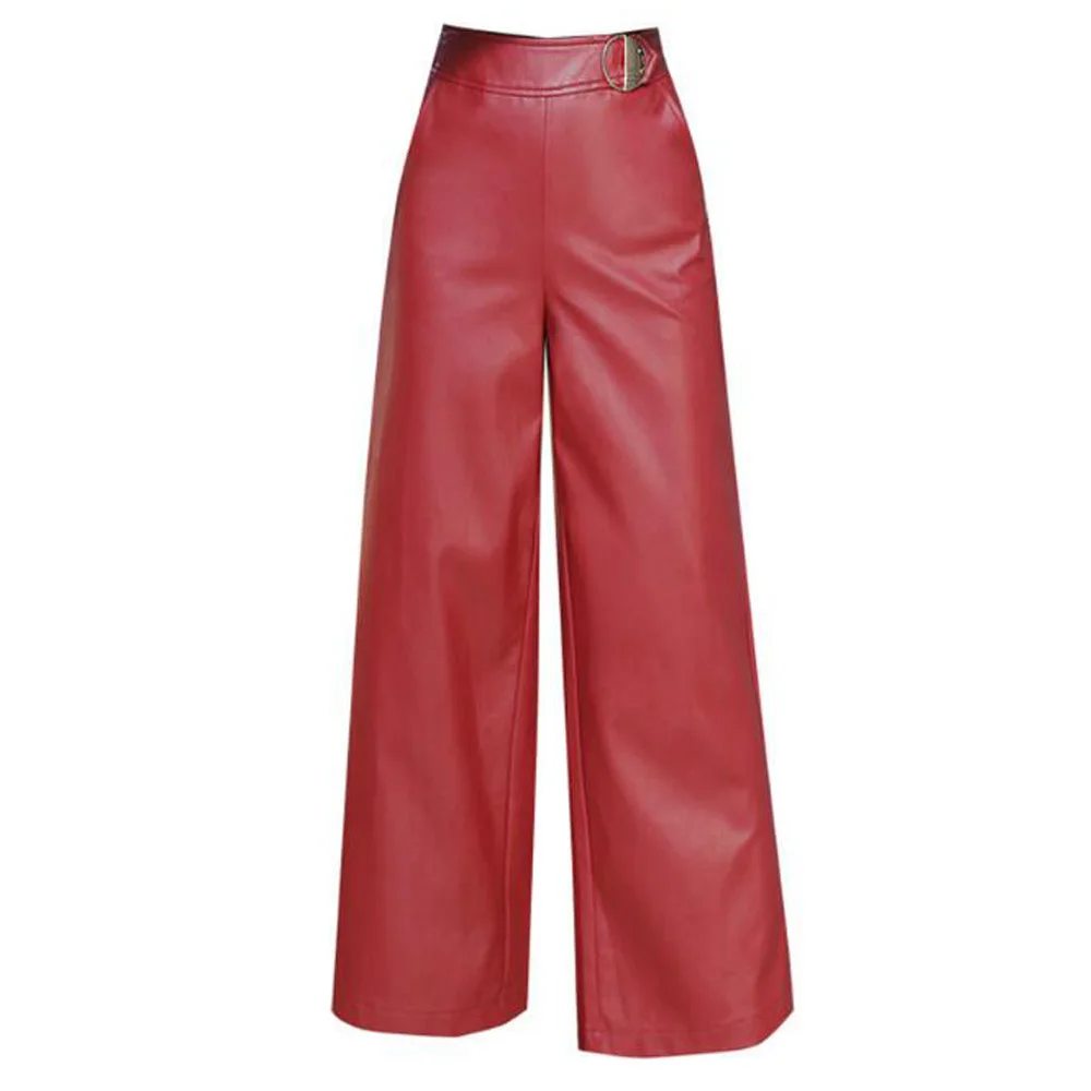 * Loose Pant Description :Red Black Faux Leather Wide Leg Pants Women Clothes High Waist Loose Ankle Length Pants Autumn Winter Long Trouser Bottoms
