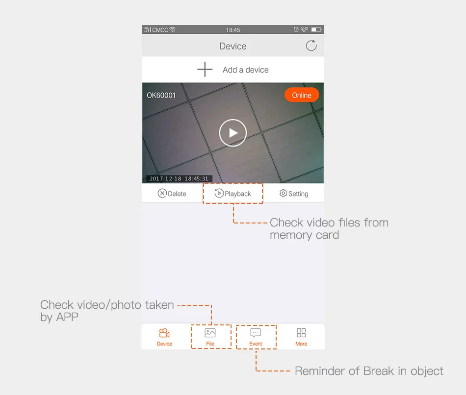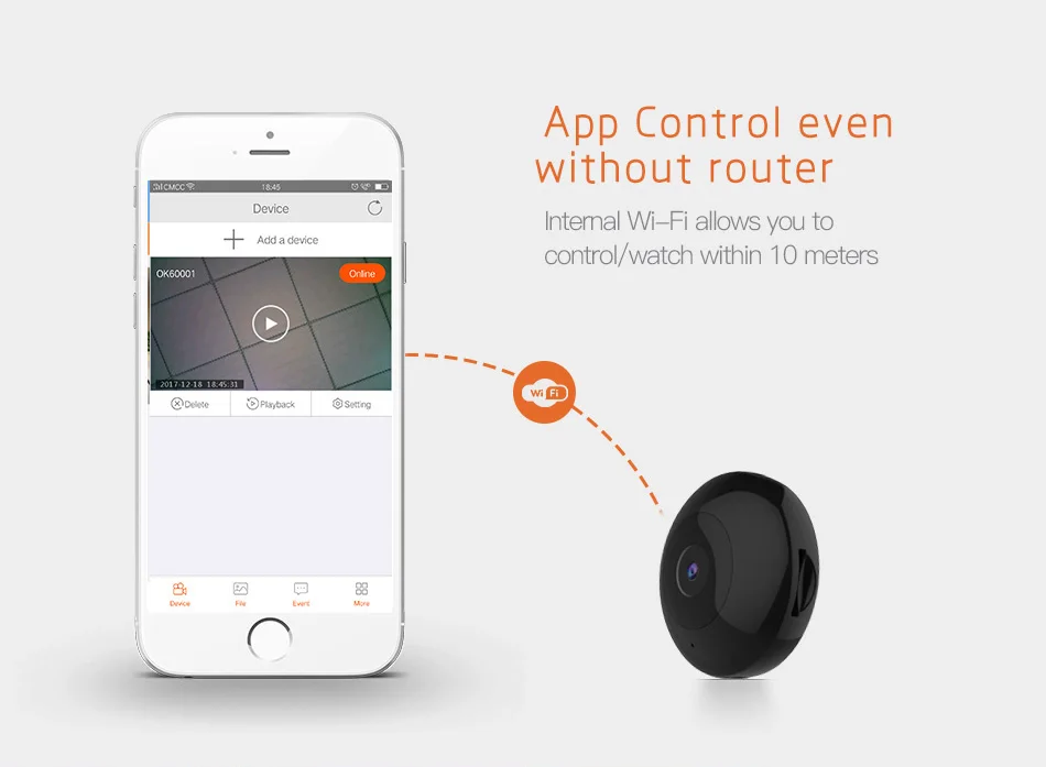 Носимая конструкция, может использоваться на любой поверхности Формат HD видео MP4, H.264 Расширенная кодировка 6 световых инфракрасных ламп ночного видения Ультра-маленькое тело, круглый дизайн ювелирных изделий Беспроводное подключение Wi-Fi, локальное подключение AP, ip-удаленное подключение, для проверки в любое время в любом месте Сигнализация обнаружения движения, циклическое видео, зарядка во время записи