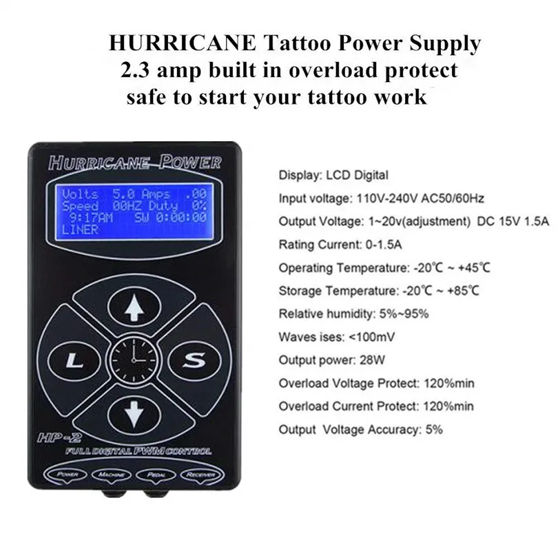 1. Усовершенствованный Цифровой микропроцессор управляемый блок. 2. Выбор увеличения напряжения: 1 в, 2 в, 5 В, Прецизионный регулятор напряжения 0-18 в 3. Линейные и шейдерные наборы с 2 машинными и 4 режимами памяти машины. 4. Технология Smart pedal: непрерывный режим (включение и выключение) или обычная функция педалей. 5. Неволатильная память (удерживает время и предустановки даже при удалении питания)