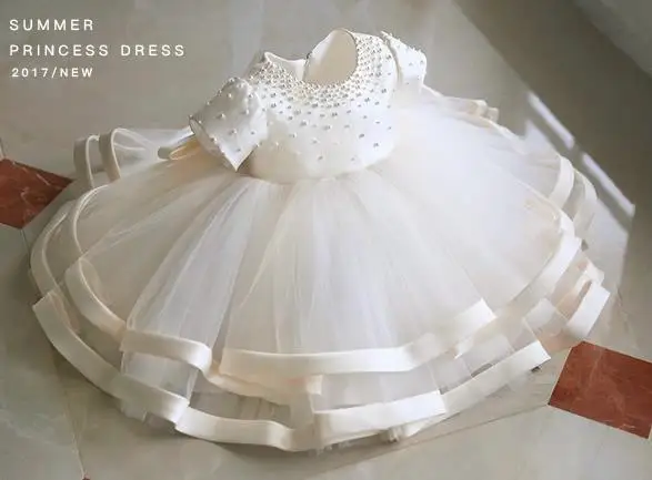 Платье для новорожденных девочек для крещения, первого дня рождения, платья для младенцев, вечерние платья из тюля с бисером для выпускного вечера, праздничные платья для маленьких девочек