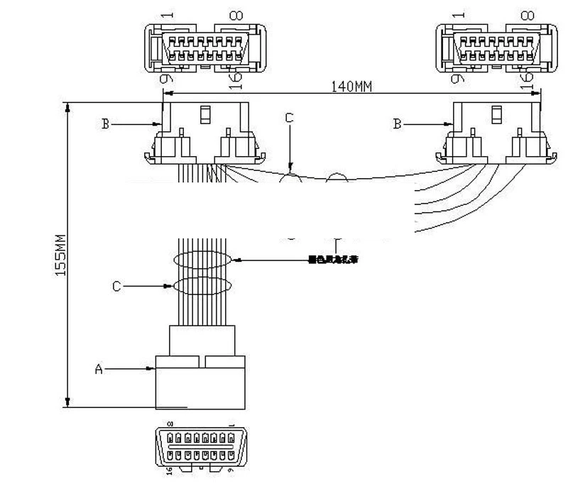 OBD2 16Pin Мужской и Женский Удлинительный кабель.