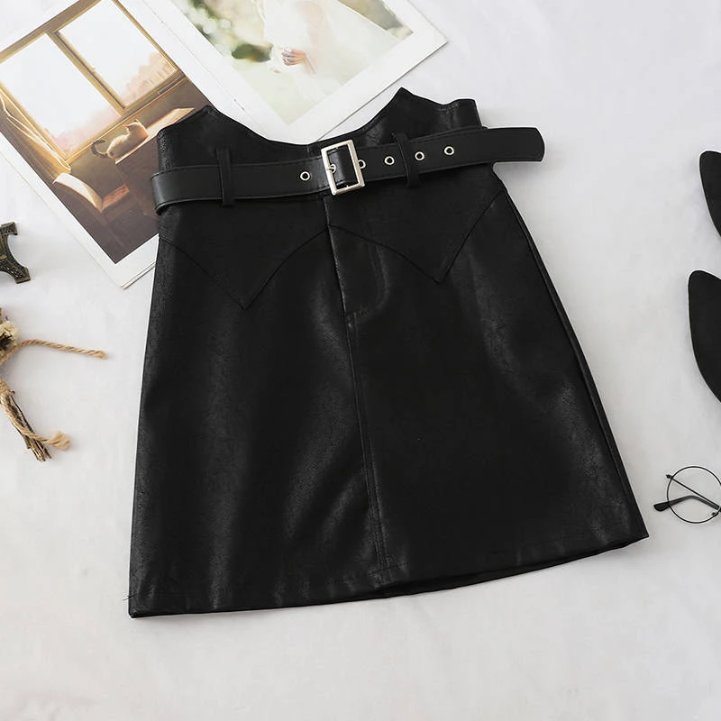 2019 зимние женские мини юбки в Корейском стиле, сексуальные женские однотонные черные вечерние юбки с высокой талией для клуба, короткие женские юбки из искусственной кожи