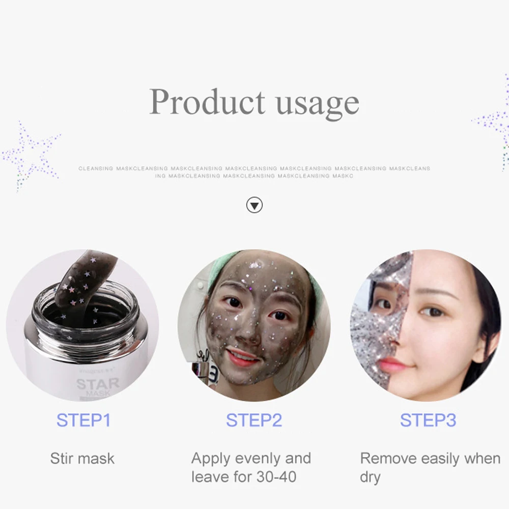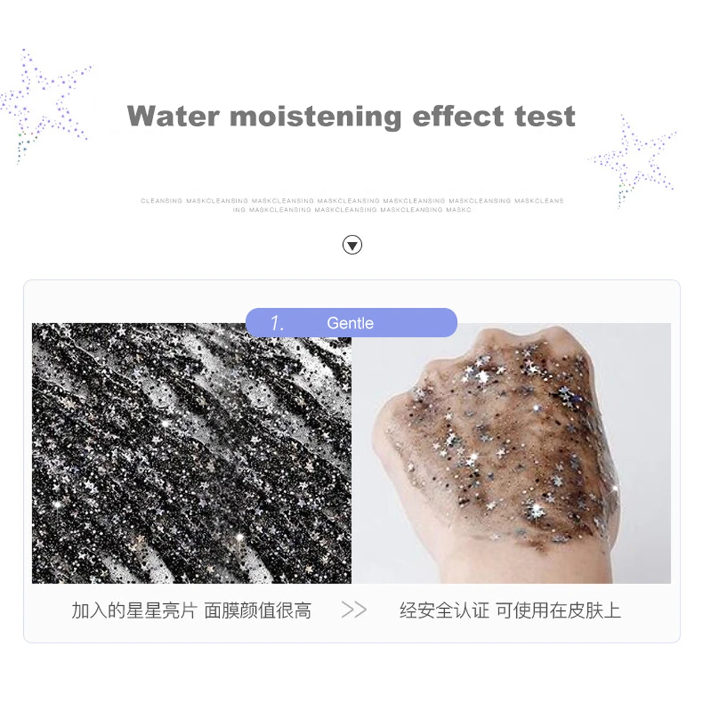-- Эта питательная блестящая обработка богата такими ингредиентами, как centella asiatica, hamamelis water и Melaleuca Alternifolia, которые помогают контурам кожи чувствовать себя более упругой и выглядеть более увлажненной после использования. -- Нанесите краску на блестящую маску со звездами, дайте высохнуть (20-30 минут) и снимите ее, чтобы показать более плотное, тонированное и более поднятое. -- После высыхания маска удаляется в идеальной блестящей пилке без оставления. -Он сделан с таким же высококачественным косметическим блеском, который используется для макияжа лица. Он также отслаивается в мусорное ведро (не смывается водой).
