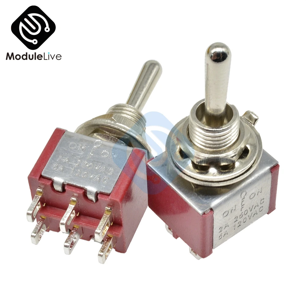 MTS-203 тумблер однополюсный двойной бросок SPDT ON-ON 120VAC 6A 1/4 дюймов Монтаж 13*11,5 мм (MTS203) 3 положения125 В/6А; 250 В/3A красный