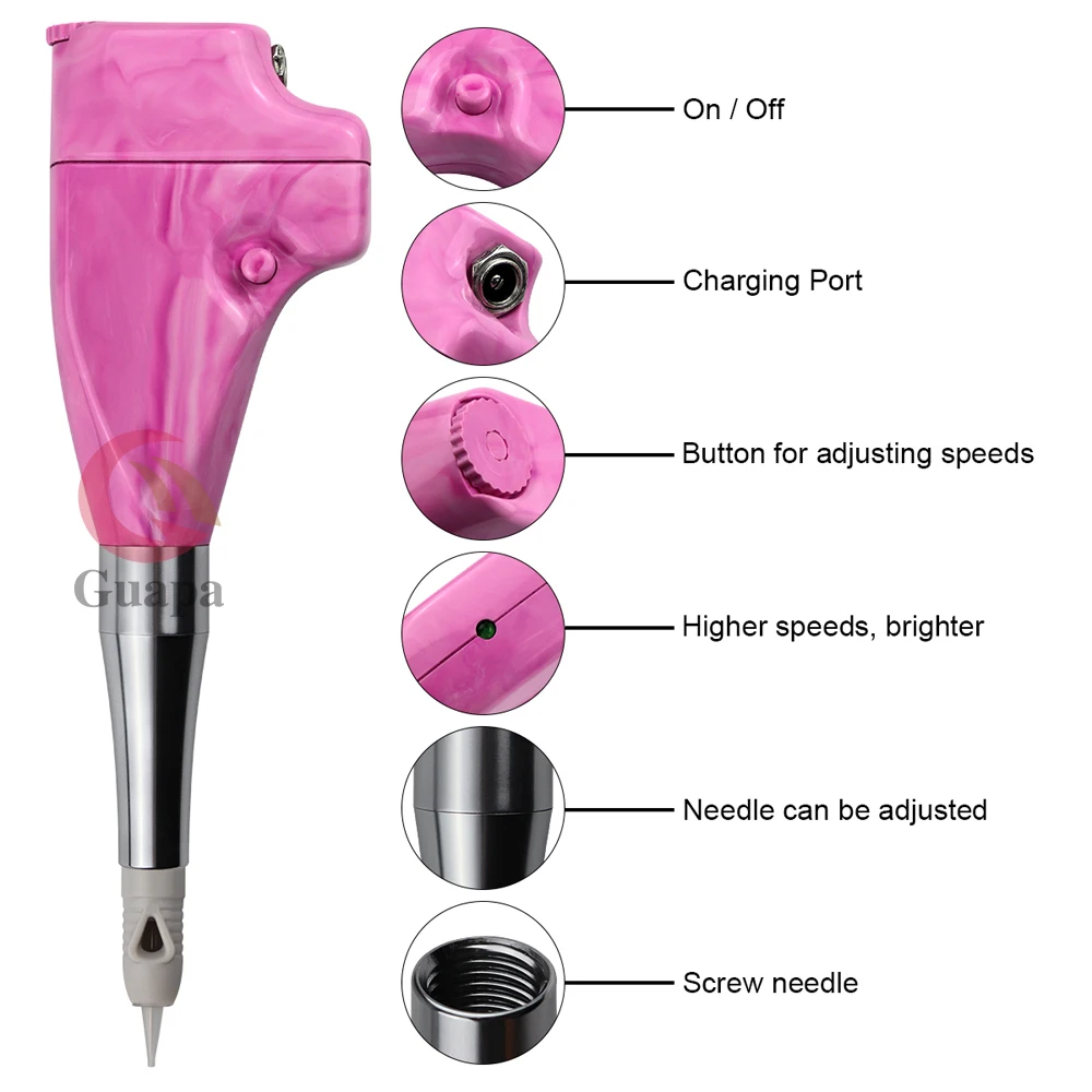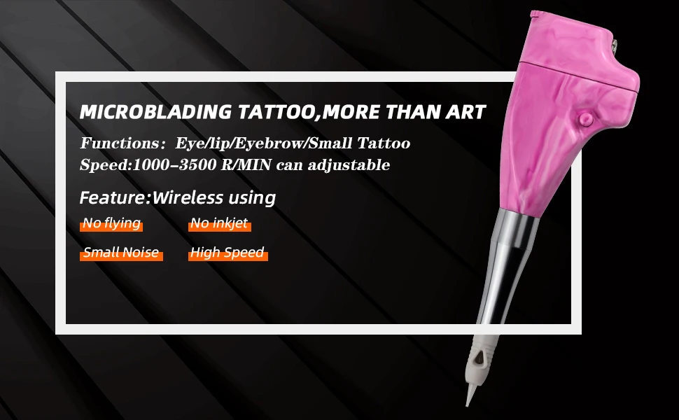 Беспроводное Использование: со встроенной батареей, pmu машина может беспроводное использование Скорость бега регулируется: Беспроводная тату-машина работает от 1000 об/мин до 3500 об/мин. Длина иглы точная шкала: permament макияж, иглы, длина может быть отрегулировать от 0 мм до 0,25 мм. Многофункциональность: машина для перманентного макияжа бровей, подводки для глаз, губ, небольшой дизайн татуировки и МТС. Доступные цвета: розовый/черный Материал корпуса ручки татуировки: пластик, с текстурой мрамора