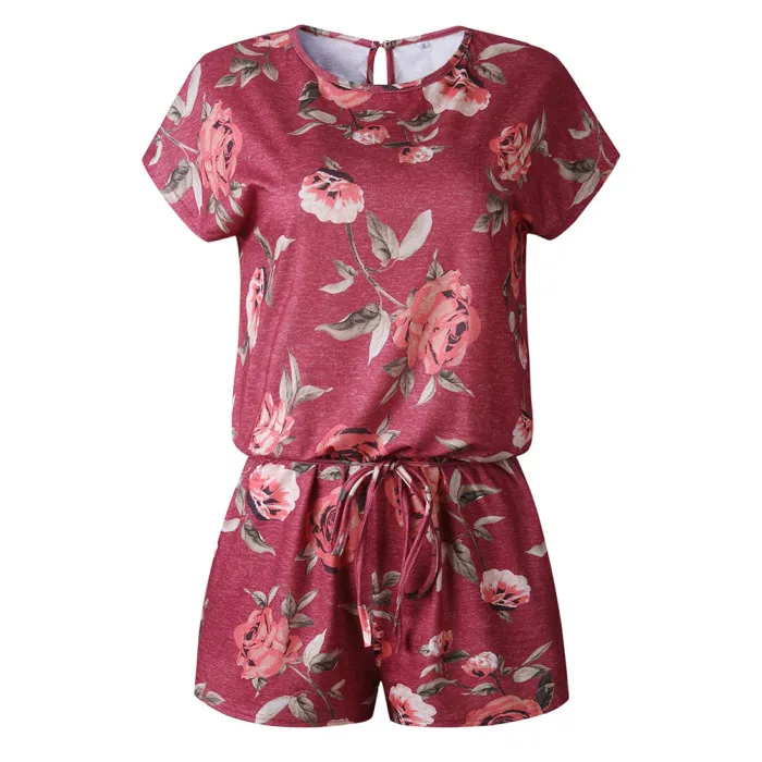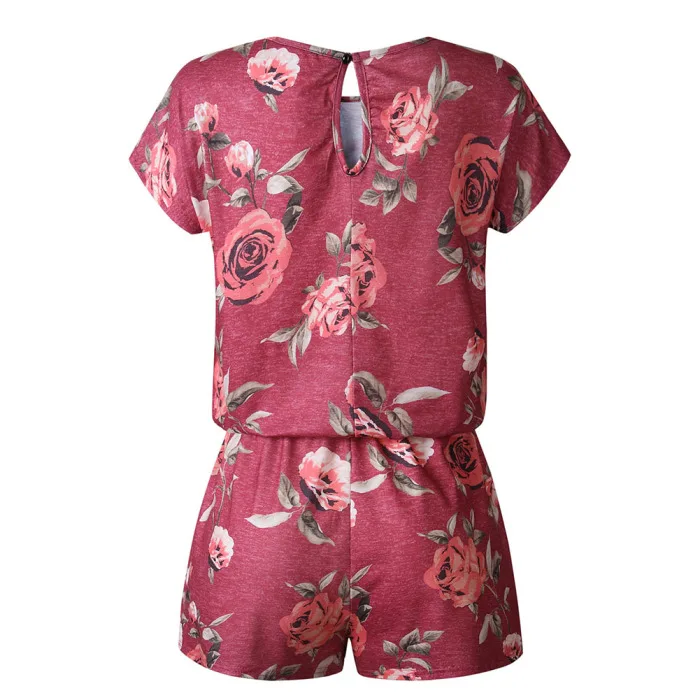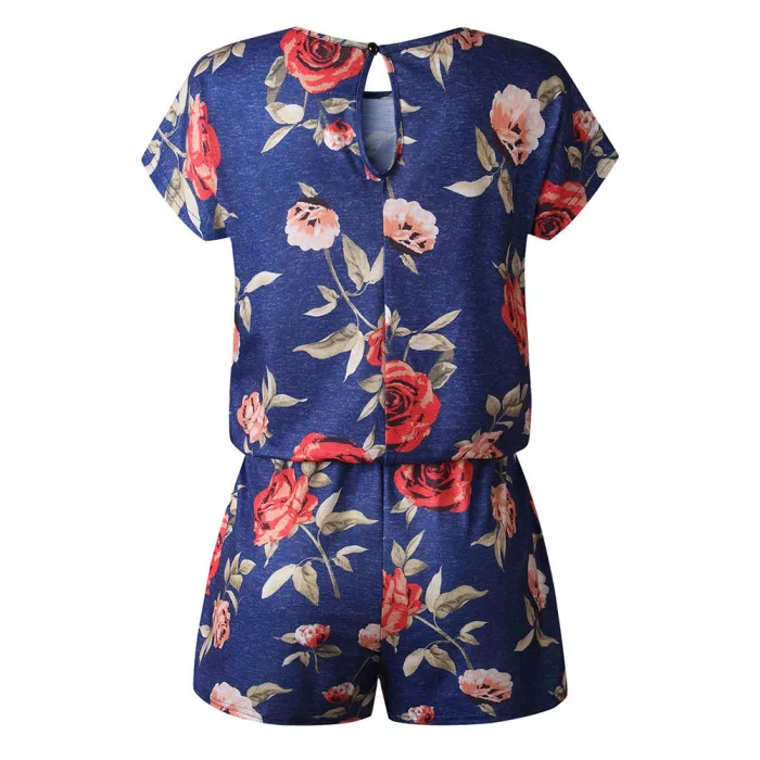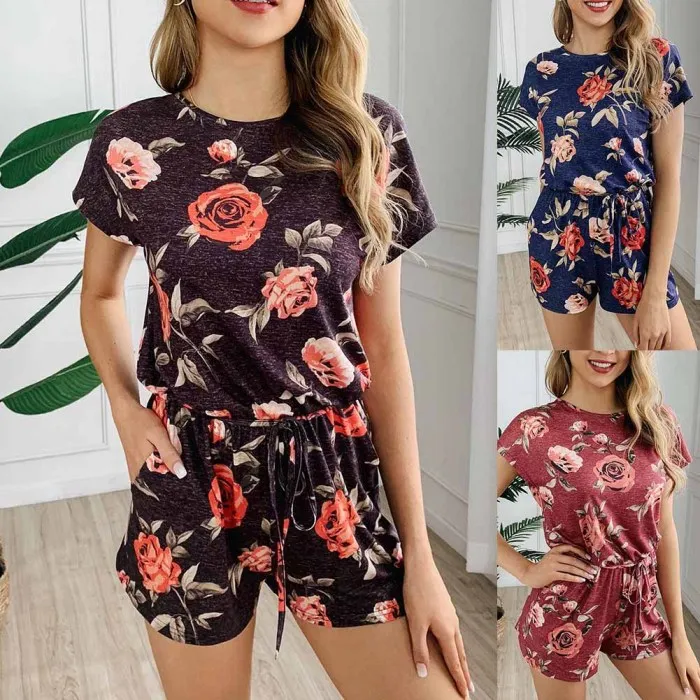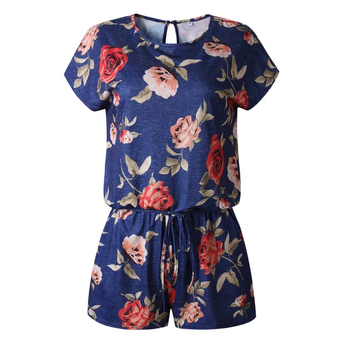 Новый женский Повседневный цветочный принт o-образным вырезом короткий комбинезон плейсьют для лета IR-ing