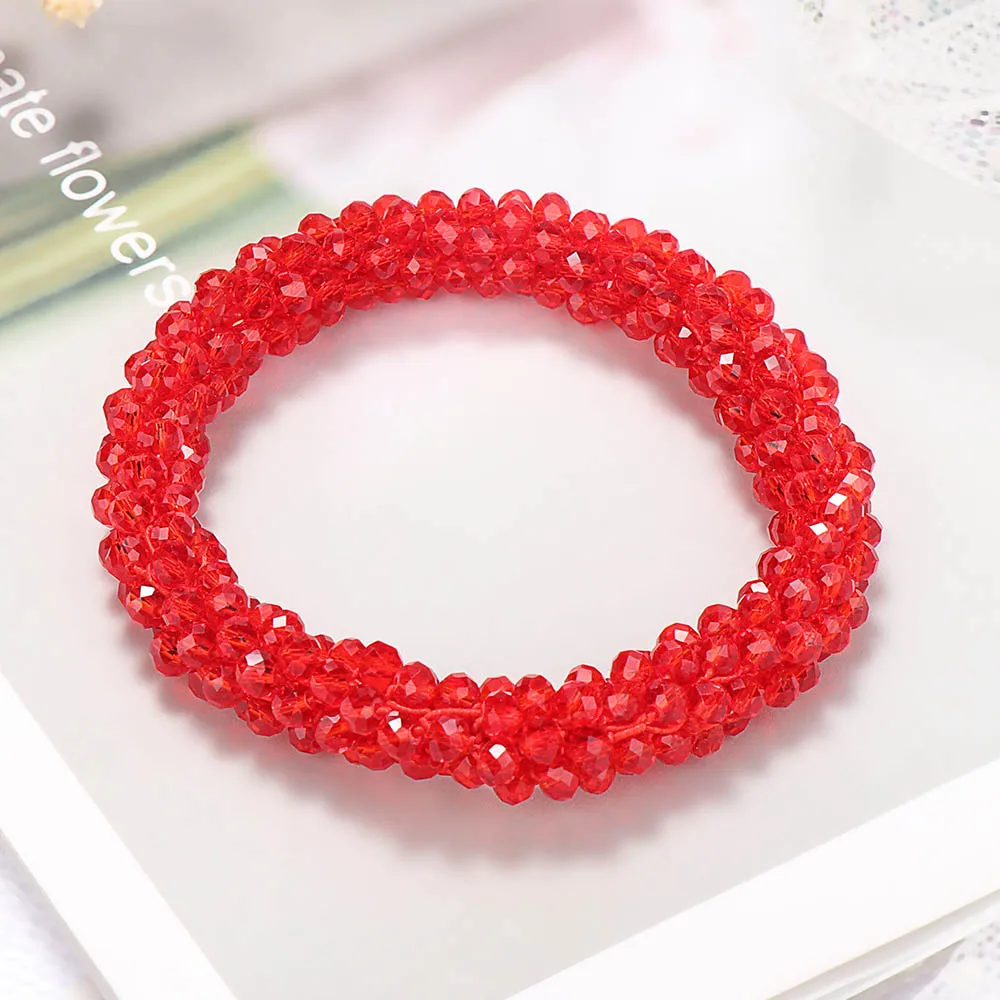 Стиль: Корейский Материал: резиновая лента, кристалл Цвет: черный, белый, фиолетовый, шампань, розовый, красный, зеленый, серый Упаковка: OPP мешок Товары включают: 1 шт. кольцо для волос
