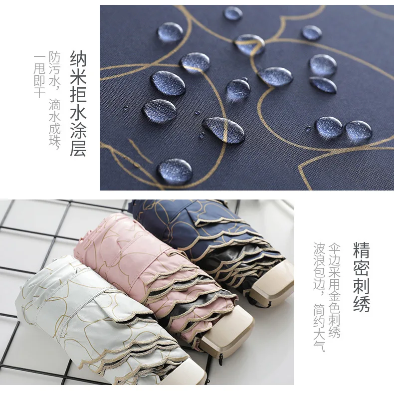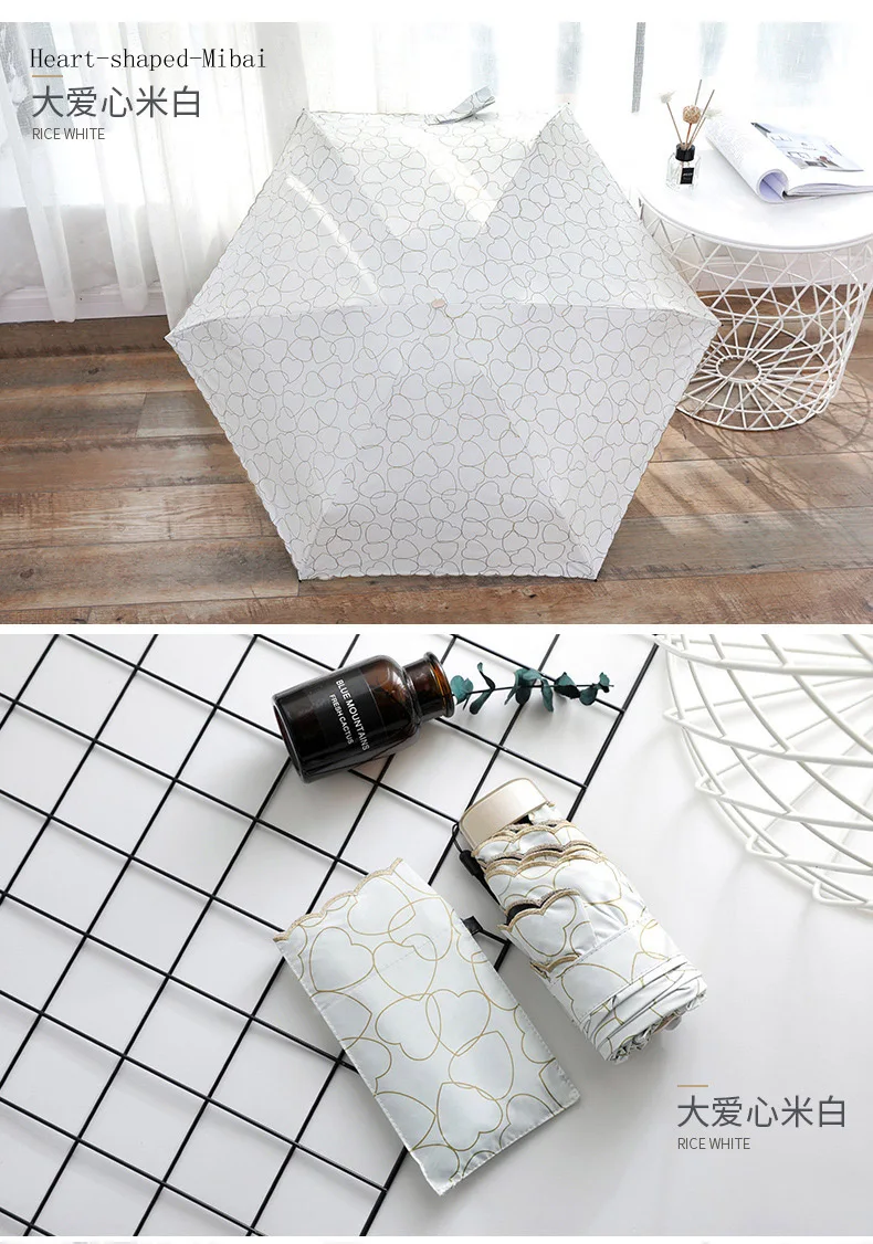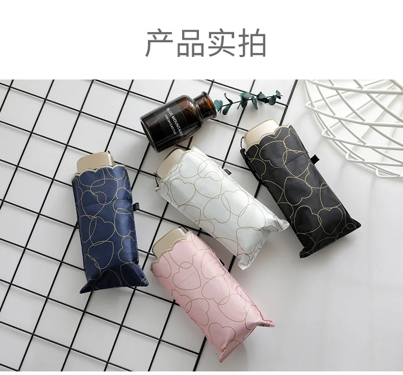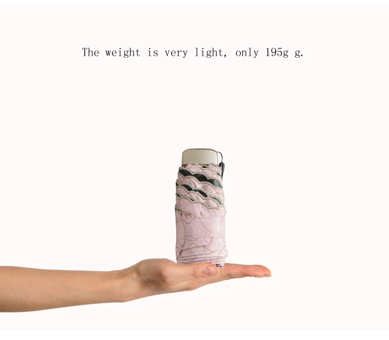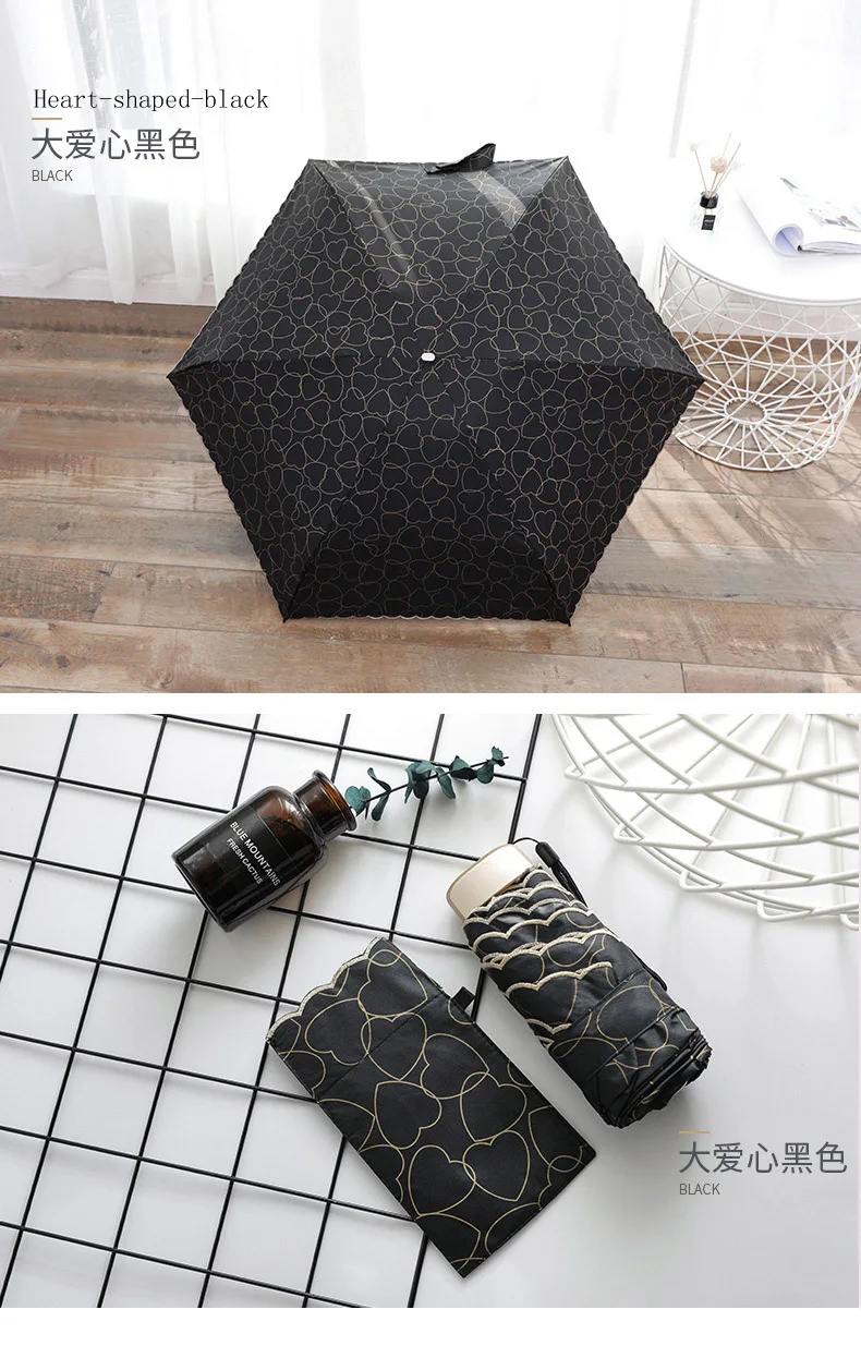 Название продукта: пятистворчатый зонтик, черный пластиковый зонт от солнца, женский зонт с УФ-карманом s526 Разложенном виде: 92 см x 52 см Размер усадки зонта: 17 см Вес: около 195 г Зонтик: 6k Теплый совет: погрешность измерения вручную составляет 1-2 см