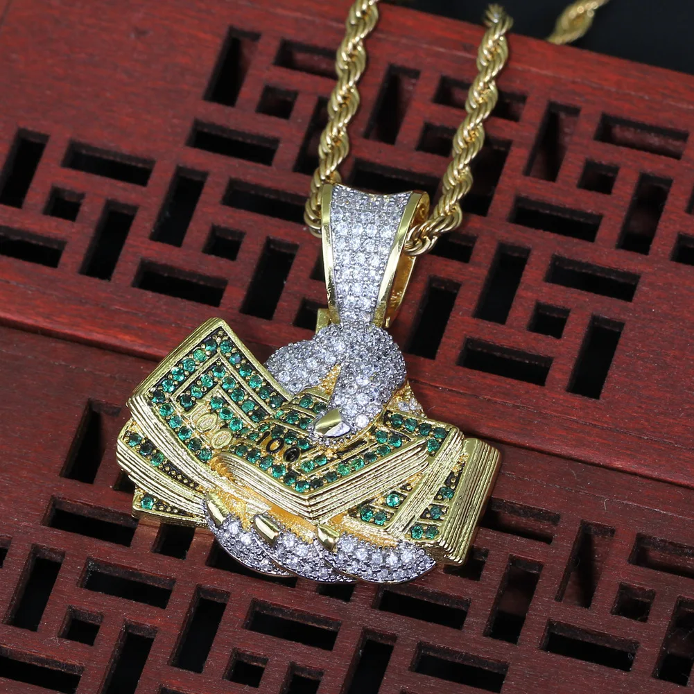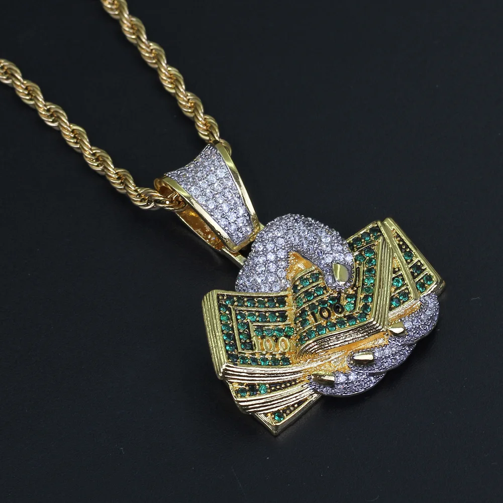 2019 Новое медное колье-подвеска из латуни AAA Циркон CZ steric Dollar money in hand мужское ожерелье в стиле хип-хоп доллар ювелирные изделия
