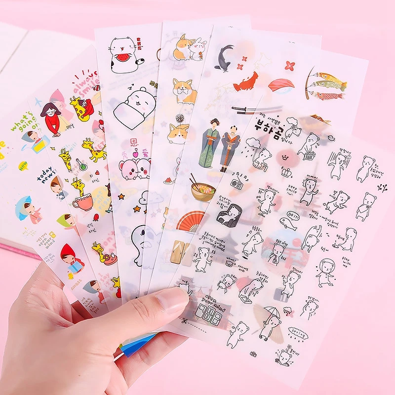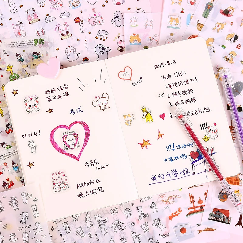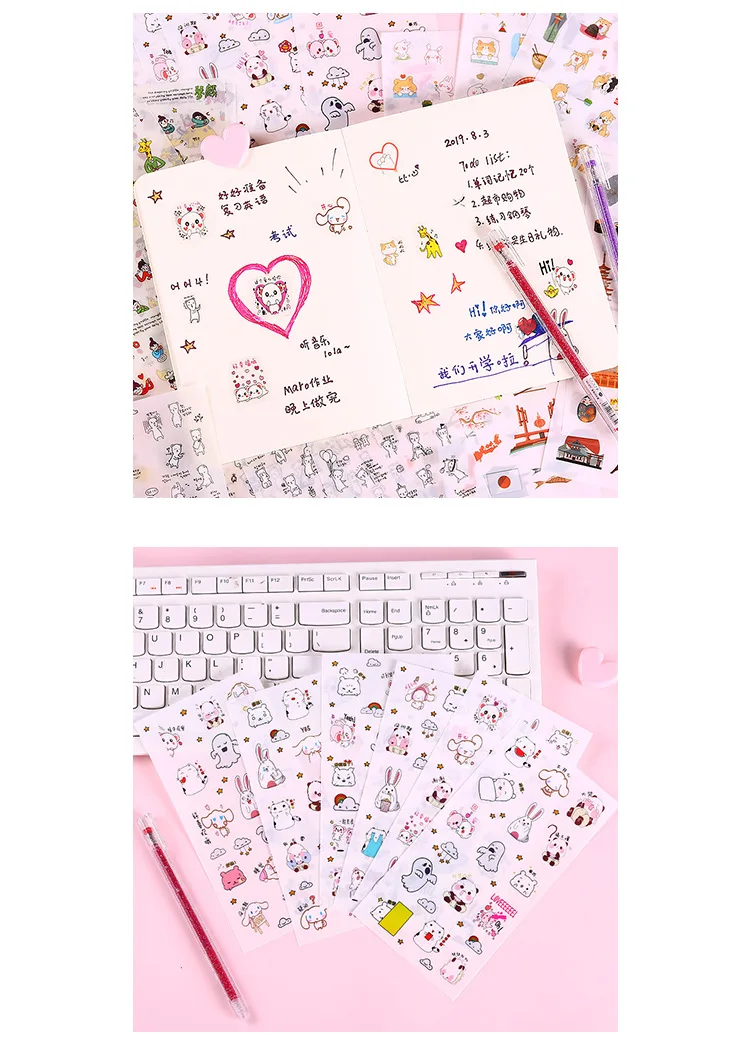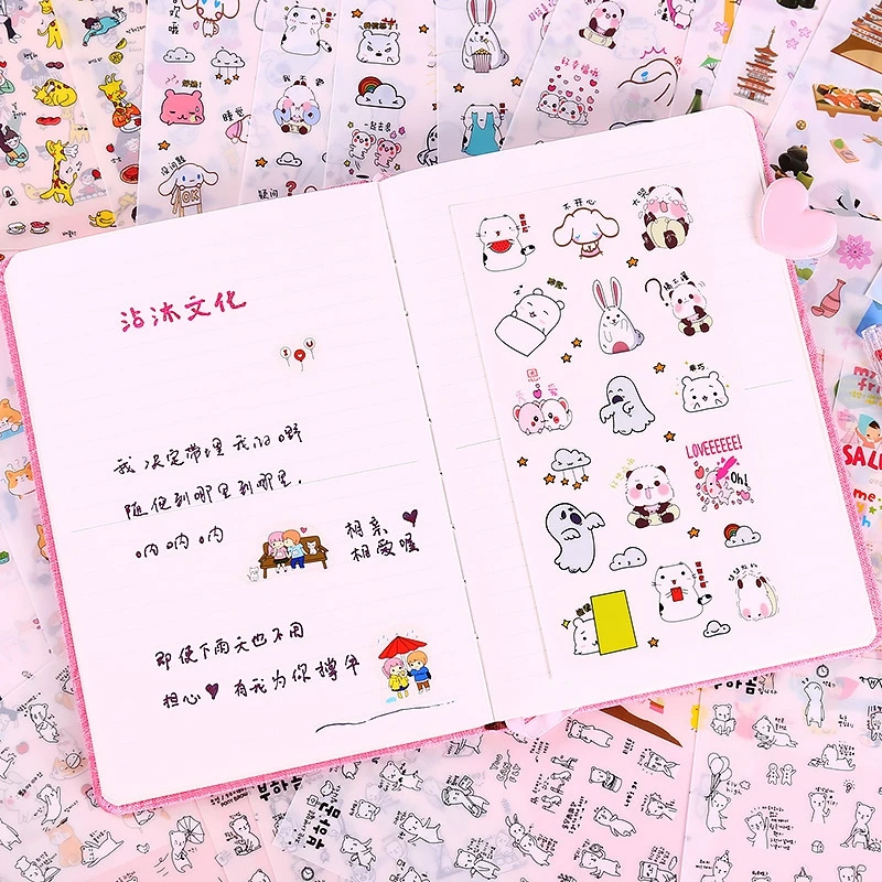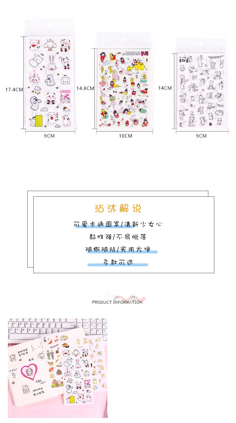 Название: милая мультяшная наклейка для девочек материал: ПВХ Размер: один узор около 1-3 см характеристики: 6 упаковок Стиль: 1. Красная Шапочка 2. Две дрова и Кролик 3. Я и мои друзья 4. Поездка в Японию 5. Милый пакет с изображением животных 6. Черно-белый медведь