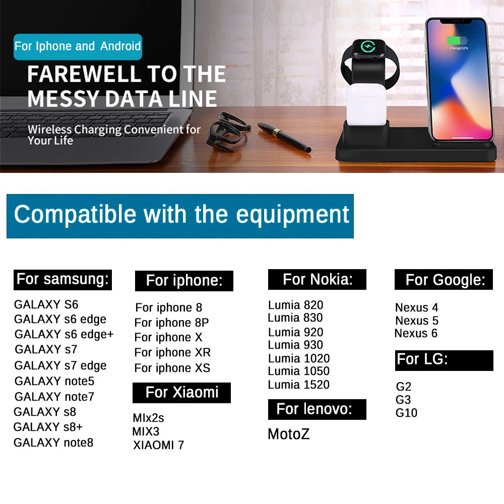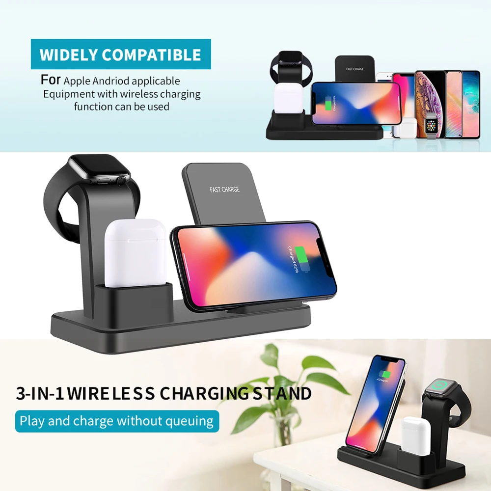 3 в 1 Беспроводное зарядное устройство: Беспроводная зарядная станция может заряжать мобильный телефон, iWatch и Airpods одновременно