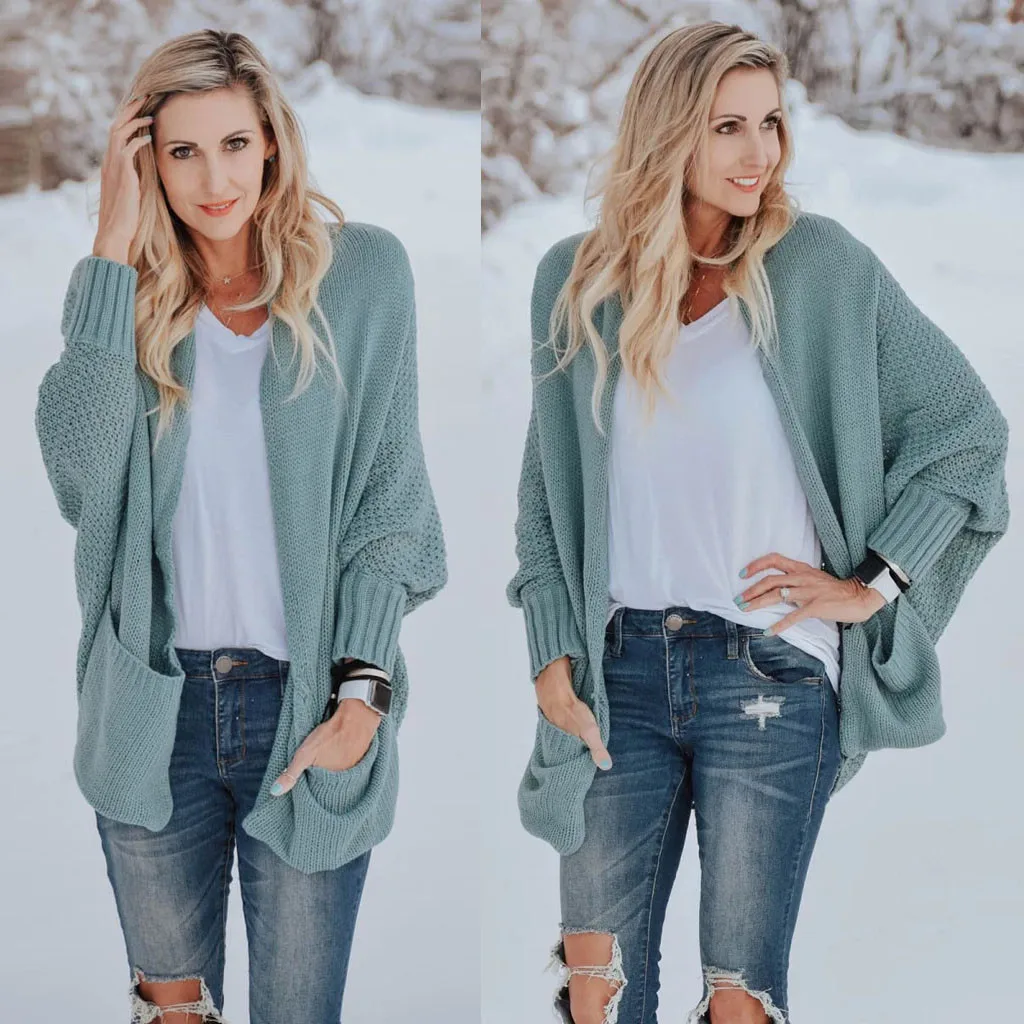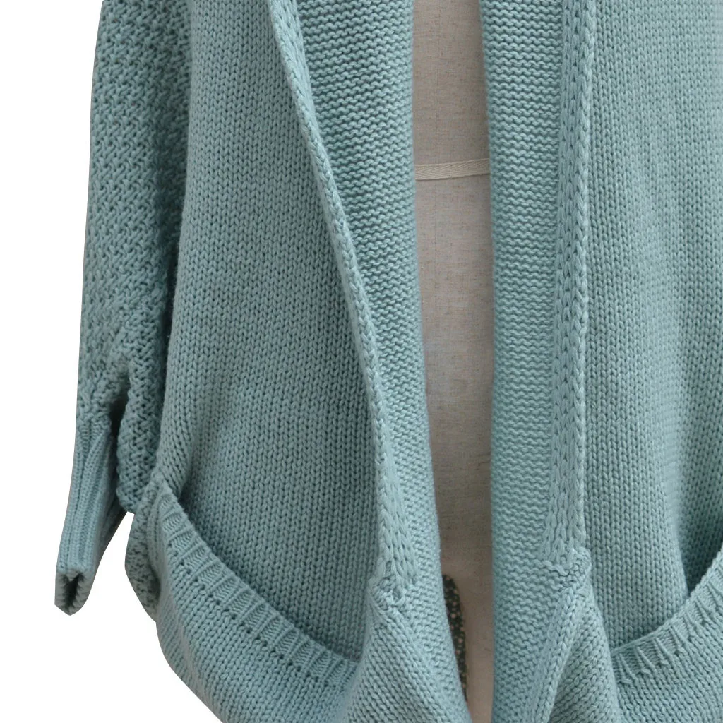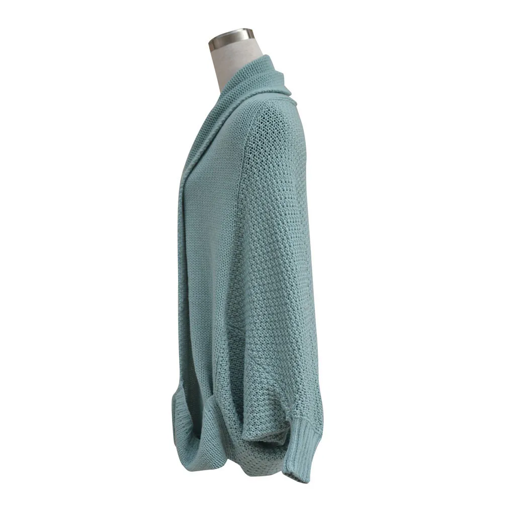 Женский Теплый длинный вязаный кардиган большого размера с рукавом летучая мышь, свитер с открытой строчкой