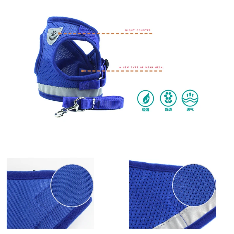 Дышащий поводок для собак с безопасными светоотражающими полосками.