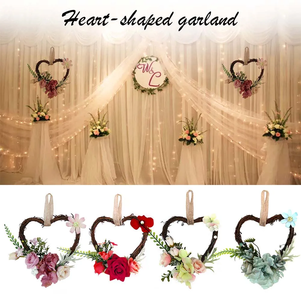 Домашняя гирлянда из ротанга в форме сердца, гирлянда, имитация, настенные цветок, украшения, свадебные двери автомобиля, подвесное кресло, украшение на заднюю панель 25А