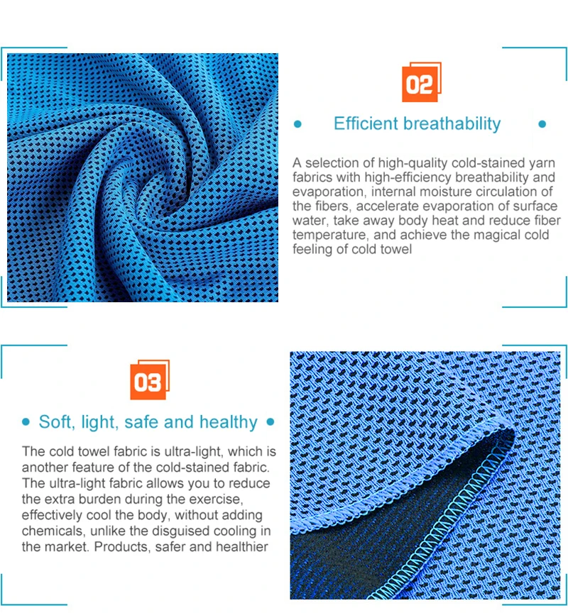 High class quality Super evaporative, feels significantly cooler in hot Physical cooling, chemical-free Fast and easy, run under water for 1 minute