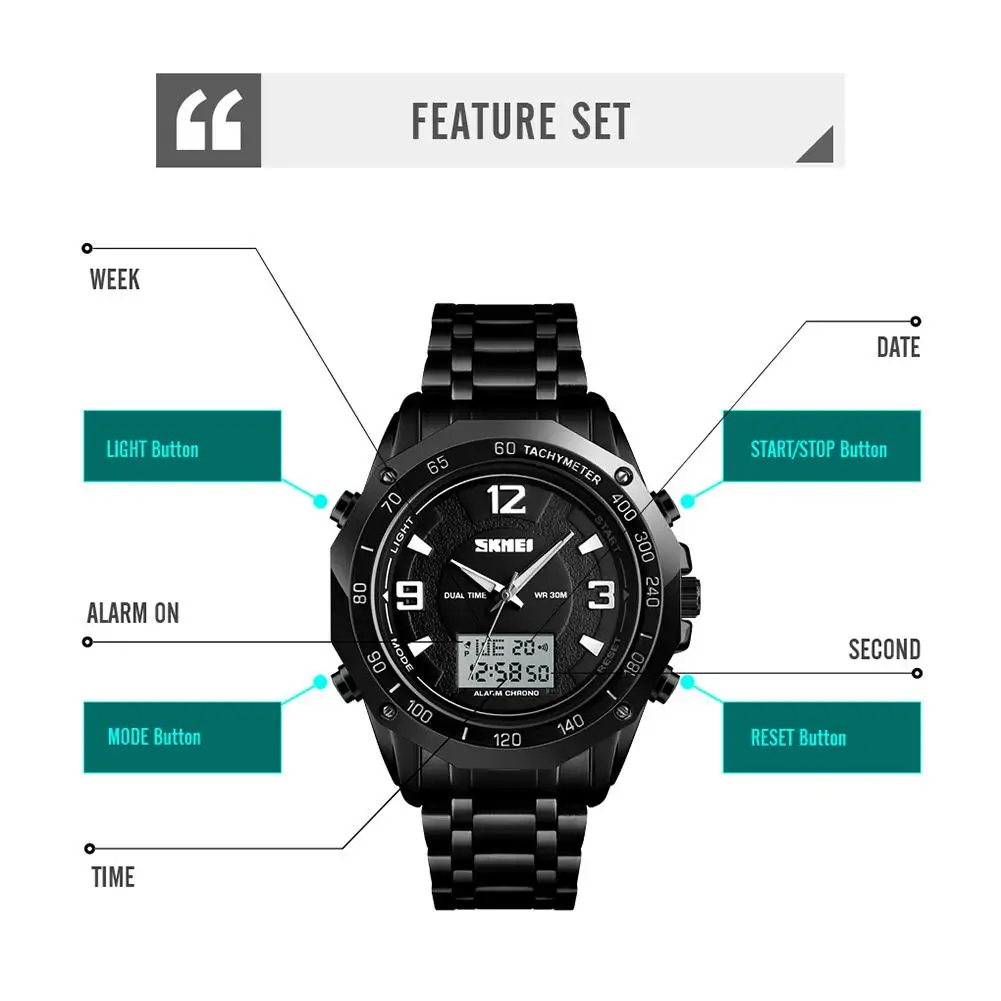 1 、 Особенности: световой, GMT, отображение дня недели, будильник, секундомер, календарь, 24-часовой индикацией1 пара часов