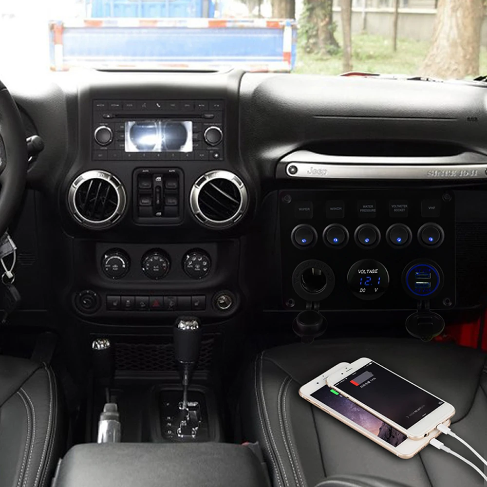 Эта панель переключателей имеет цифровой дисплей напряжения, светодиодный индикатор, водонепроницаемую панель, зарядное устройство 12 В и двойной USB-адаптер питания 5 В.
