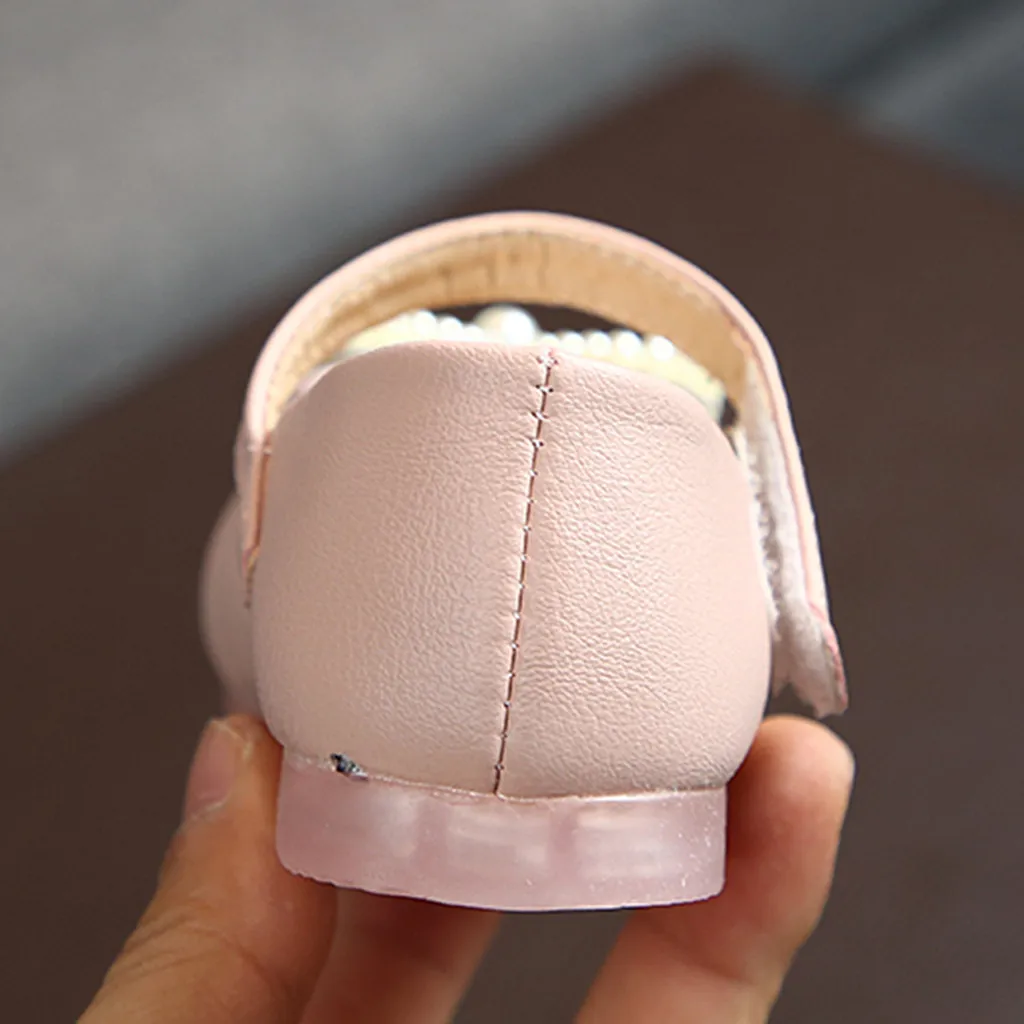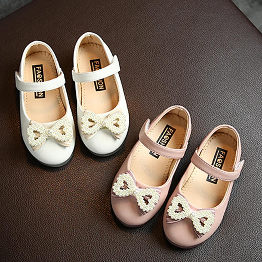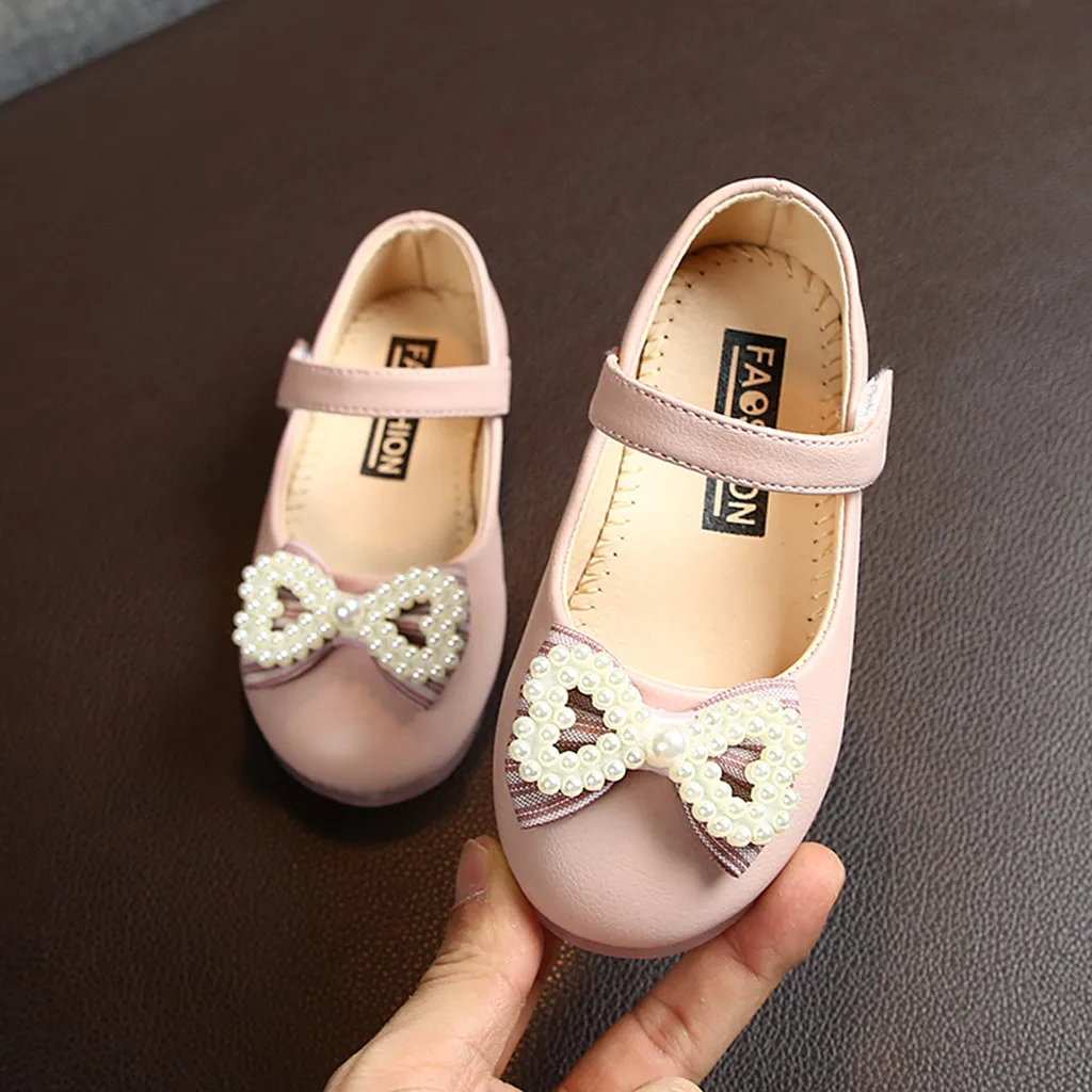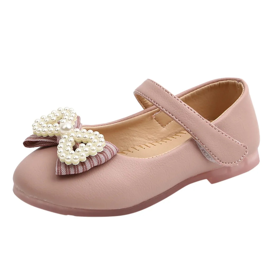 Кожаная обувь принцессы с бантом-бабочкой и жемчугом для маленьких девочек