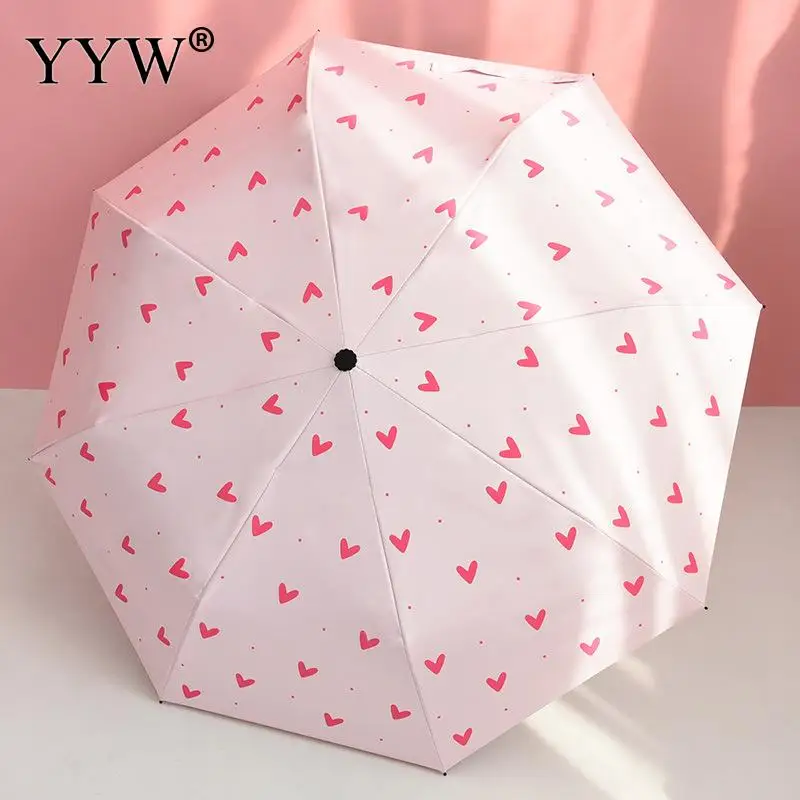 Folding Sun Umbrella Rain Women'S Umbrellas Heart Parasol Paraguas Anti-Uv Umbrella Vinyl Ambrella Summer Travel Sombrilla, Sold By PC