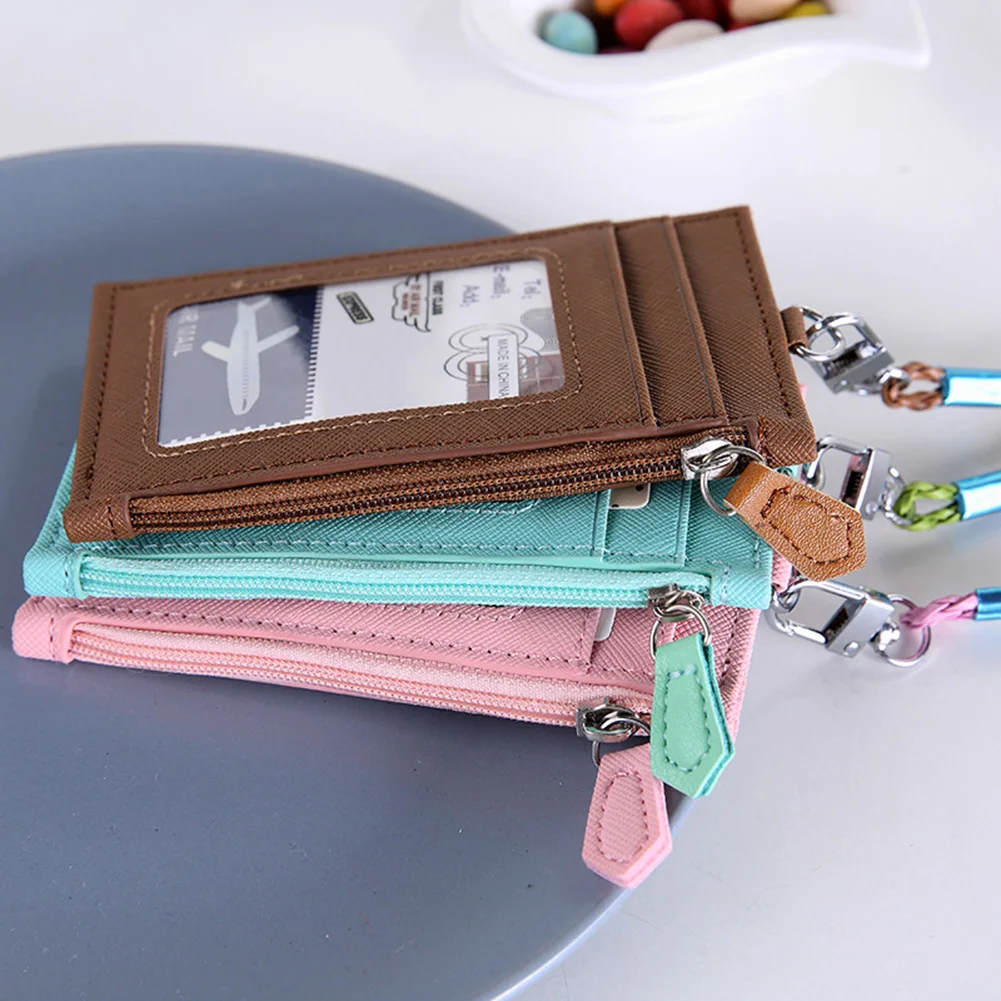 Унисекс мульти-слот на молнии искусственная кожа ID значок сумка ремешок Кредитная карта рукав