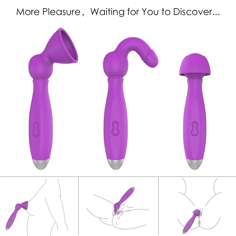Этот вибратор можно использовать с тремя различными шапками массажера. Это может быть присоска, вагинальная присоска или Стимулятор клитора. Вы также можете поместить его внутрь вагины.