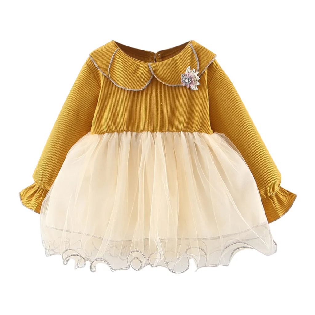 Toddler Baby Kid Girl Ruffles Lace Tulle Patchwork Flower Casual Dresses Clothes
