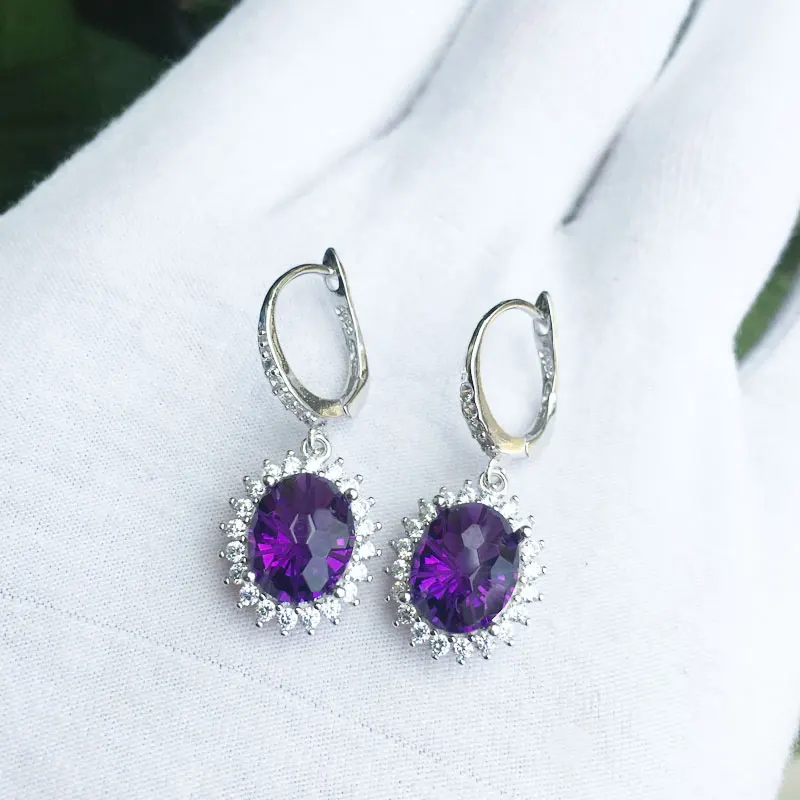 CSJ аметист кварц драгоценный камень благородные хорошие серьги серебро 925 пробы oval8 * 10 мм футбольная огранка ювелирные изделия для женщин подарок леди Основной камень: аметистовый кварц Размер камня: Овальный 8*10 мм 4.5ct Камень каракатин: футбольная резка Вес: 4,8 г