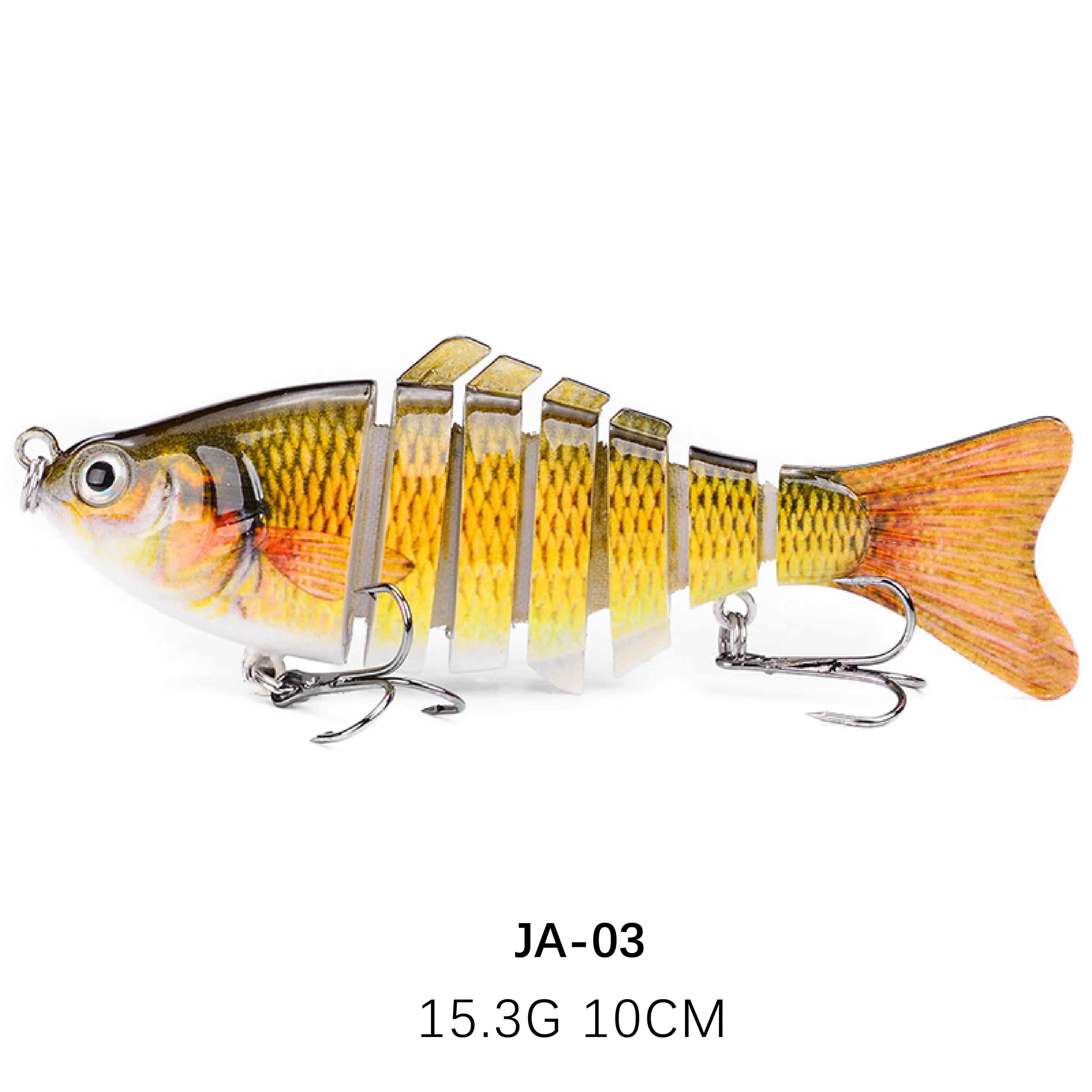 Тип приманки: соединенная приманка Вес приманки: 15,3 г/10 г Приманка Длина: 10 см/15 см Крючки: 2 * прочные тройные Крючки Глаза: 3D рыбий глаз Кольца: Плоские Кольца Конечная рыба: бледно-чаб, бас, пикс, желтый карп, китайский окунь, топовый культер 3D реалистичные глаза и тело делают эту жизнь похожей на рыбу. Части тела соединяются с текстильной тканью позволяет этой приманке перемещаться по бокам, как настоящая рыба будет плавать. Многоразовые экологические защитные Картеры largemouth. Различные цвета и узоры, чтобы соответствовать любой рыболовная среда. Поднимите расстояние броска, производите звук привлекает больших хищников. Обтекаемый дизайн уменьшает сопротивление ветра во время бросания.