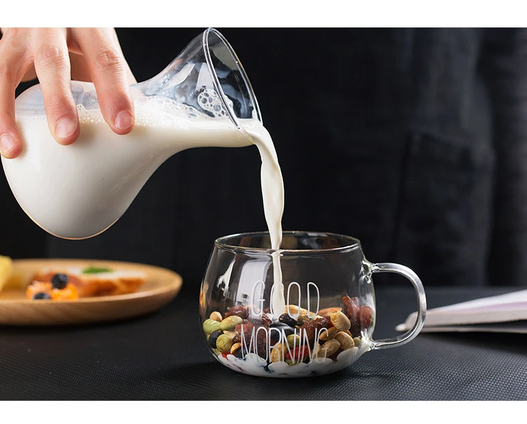 Творческий завтрак доброе утро пары капучино латте кофе чай молоко Йогурт стеклянные чашки путешествия