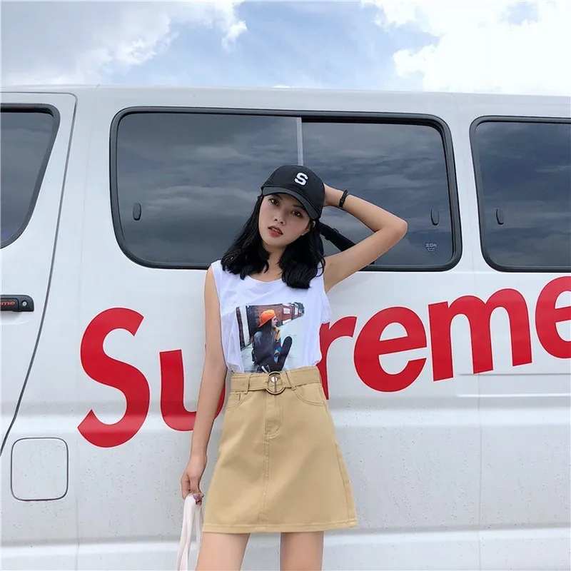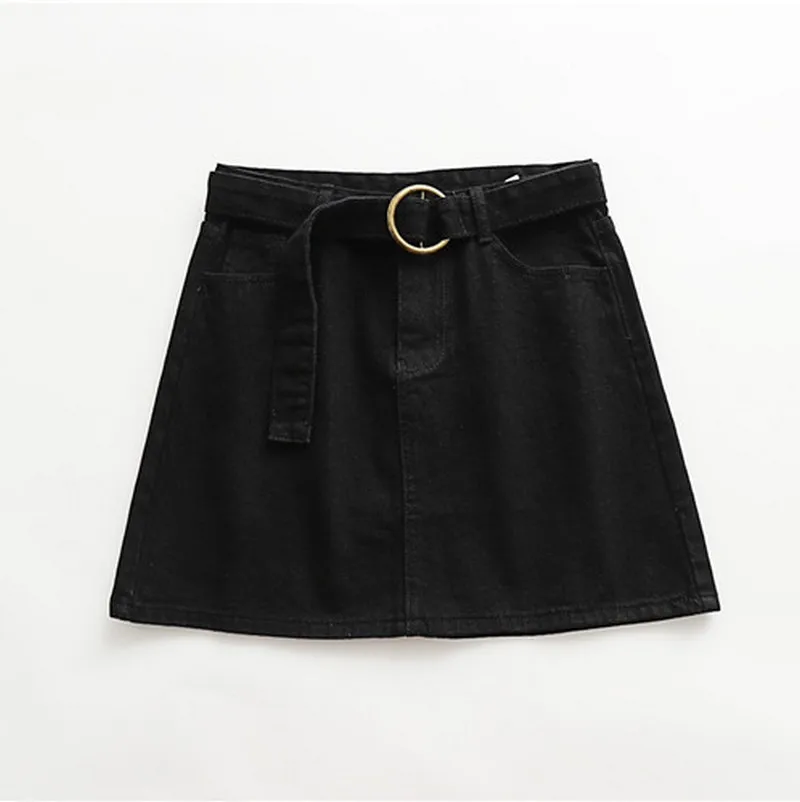 Летняя женская юбка ярких цветов Повседневная джинсовая юбка Harajuku Женская Корейская черная красная хаки Высокая талия Женская джинсовая юбка с поясом