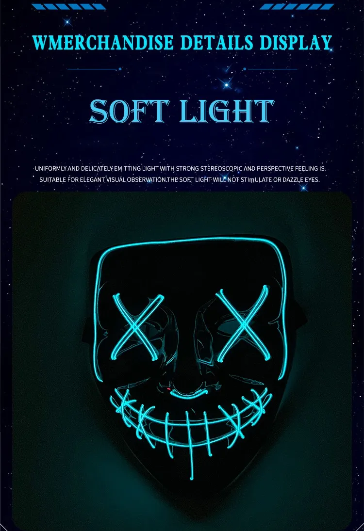 Хэллоуин СВЕТОДИОДНЫЙ светящаяся маска флуоресцентная маска страшная маска для тематическая вечеринка Хэллоуин бар шоу