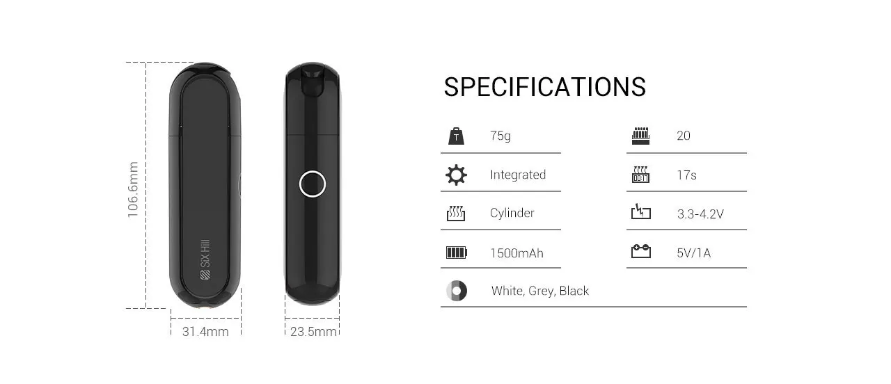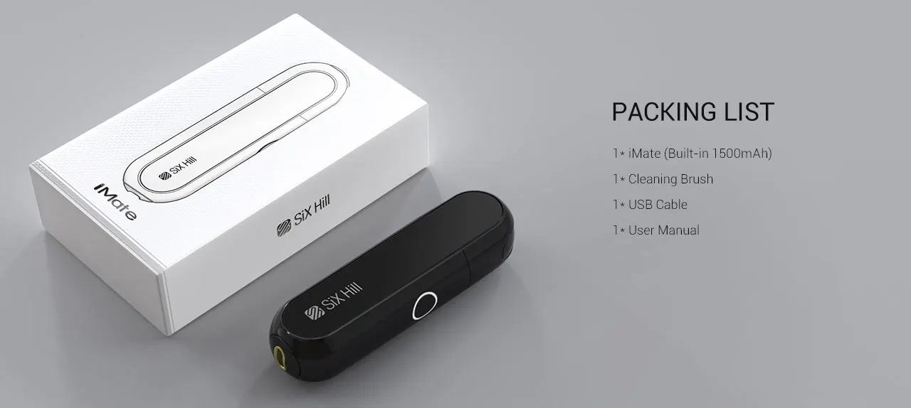 1 * iMate 1 * USB кабель 1 * Чистящая Щетка 1 * Руководство пользователя Изящный дизайн, карманная шестерня Изогнутая скользящая крышка, вставленная в аккумулятор, элегантная и интегрированная в целом. Долговечная игла нагреватель Используйте весь день, весь год в режиме ожидания