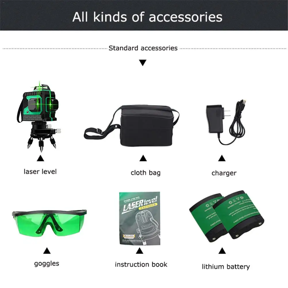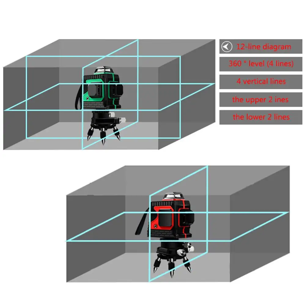 Лазерный уровень 12 линий 3D самонивелирующийся 360 горизонтальный и вертикальный крест супер мощный зеленый лазерный луч