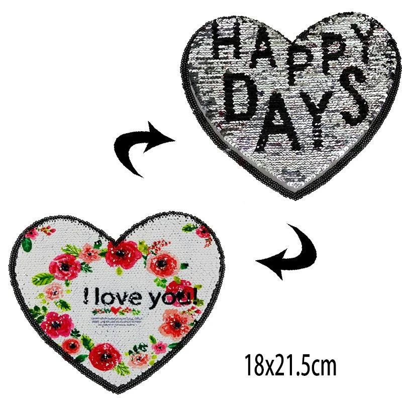 Цветок Любовь Сердце стикер Реверсивный блесток патч пришить дешевые вышитые патчи для одежды полосы DIY Аппликация значок