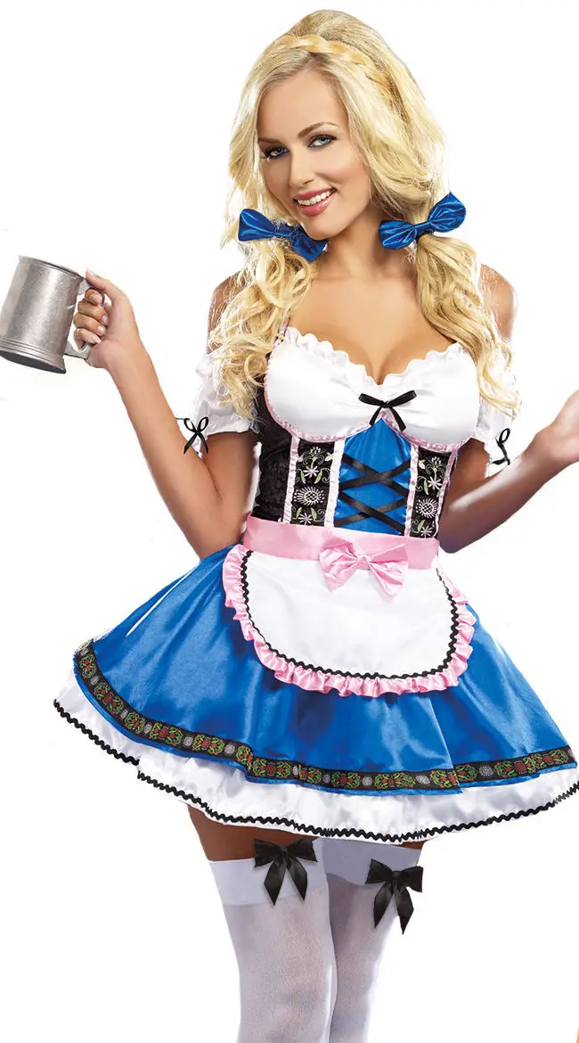 Горячая Dirndl немецкая пивная горничная костюмы для женщин Октоберфест карнавальный маскарадный костюм Disfraz Mujer Хэллоуин костюм горничной