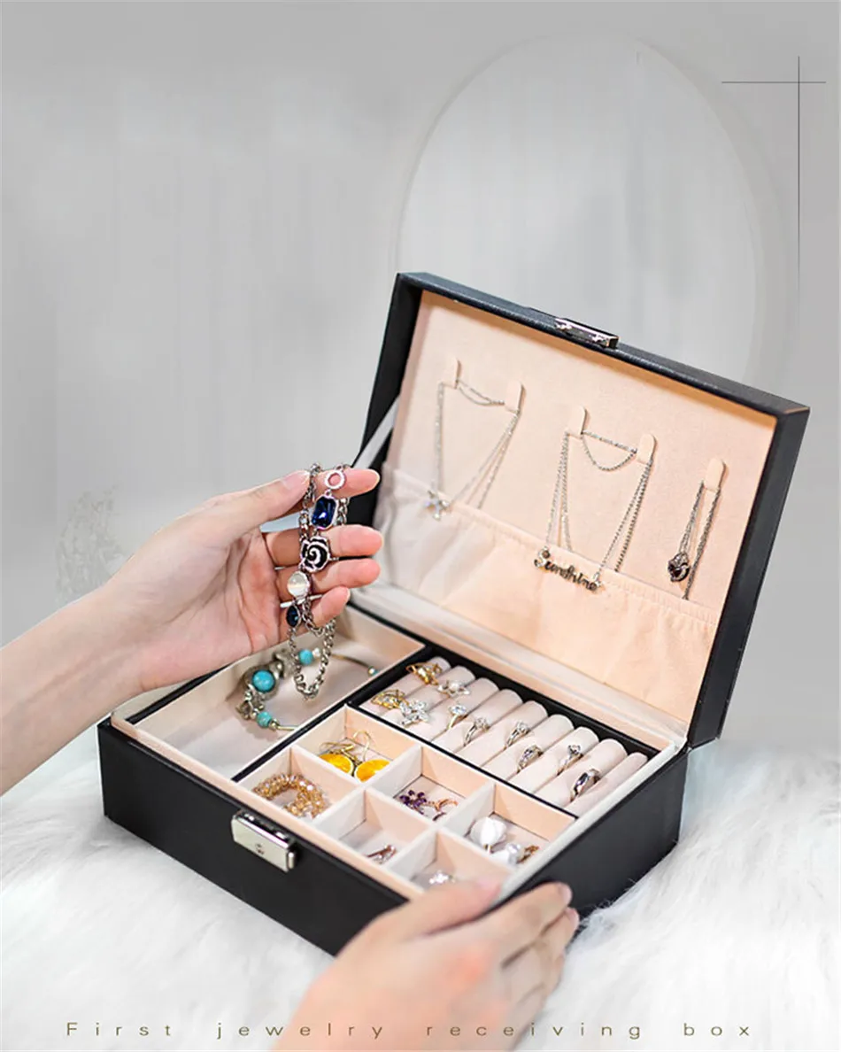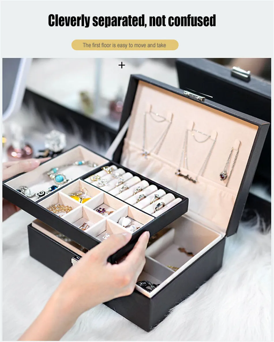 2. Хорошо обученные профессионалы детали: защищает от появления ржавчины металлической пряжкой оснастки легко открывается и закрывается с помощью всего лишь одной рукой. Этот продуманный коробка ювелирных изделий будет очень функциональный