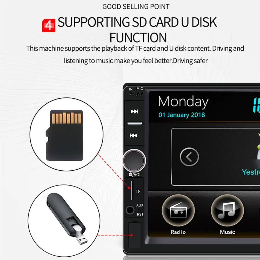 Высокое разрешение: 1080 P HD. 7-дюймовый ЖК-дисплей сенсорный экран предлагает вам незабываемые впечатления от просмотра видео высокой четкости. Поддерживает формат воспроизведения видео AVI/MP4/FLV/RM/RMVB/3GP