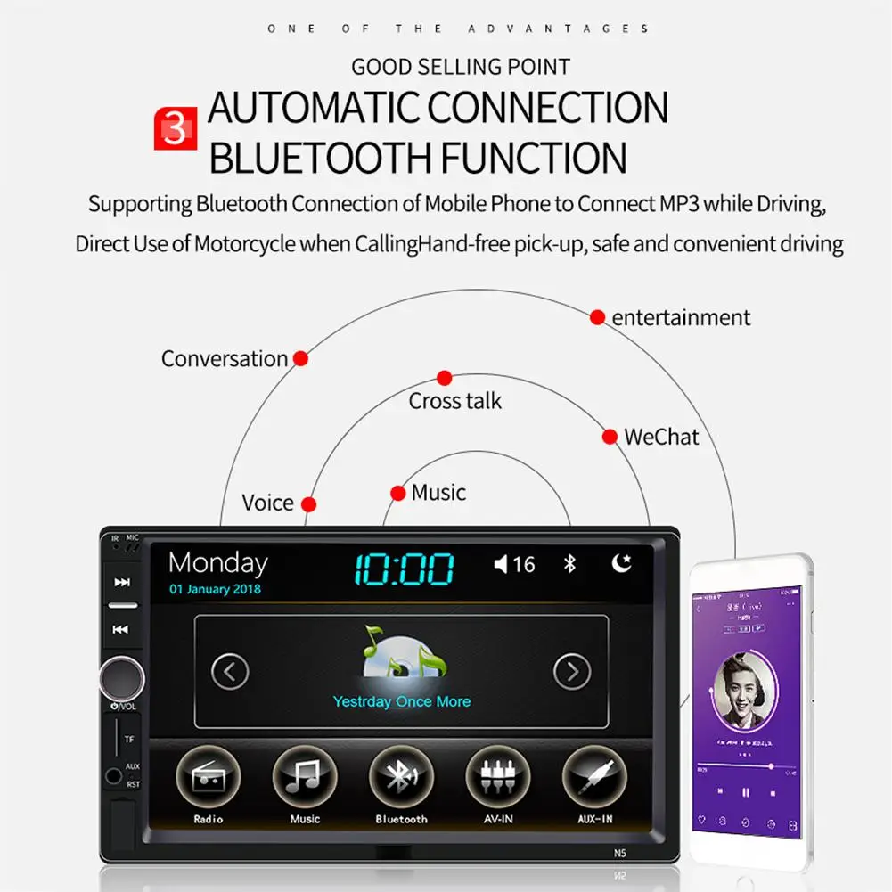 2. Поддержка Bluetooth аудио музыка и громкой связи.