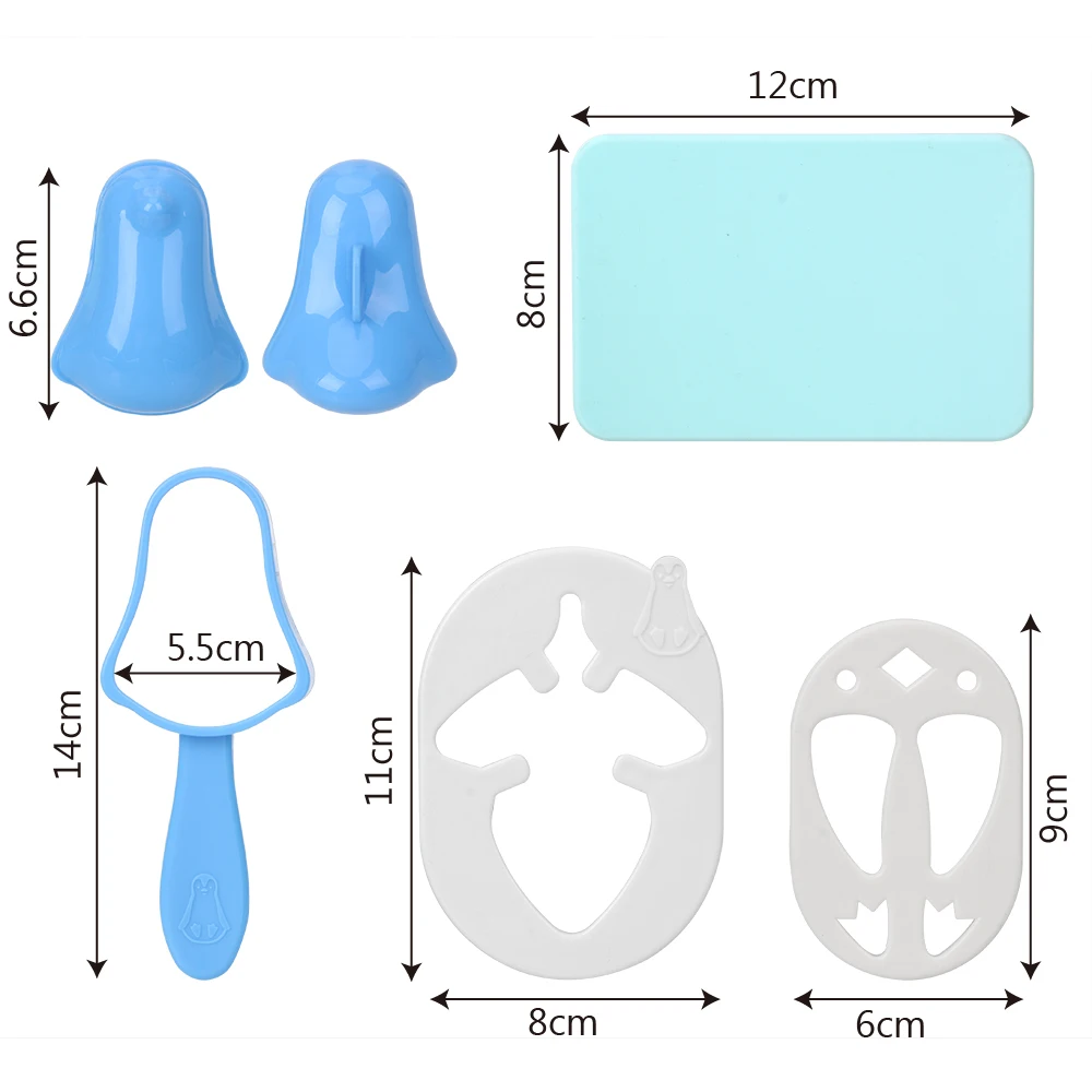 100% новый и высокое качество Цвет: синий + белый Материал: АБС + силикон Рисунок: пингвин Размер: как на картинке В комплект входит: 1 Набор форма для рисовых шариков