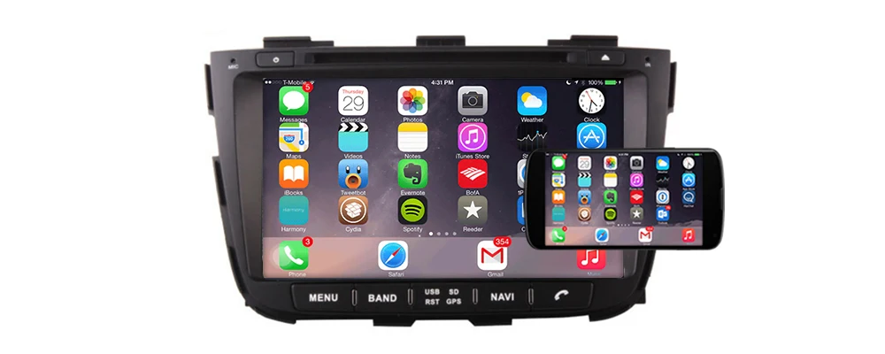 Поддержка проводной зеркальной связи с android телефоном и iPhone