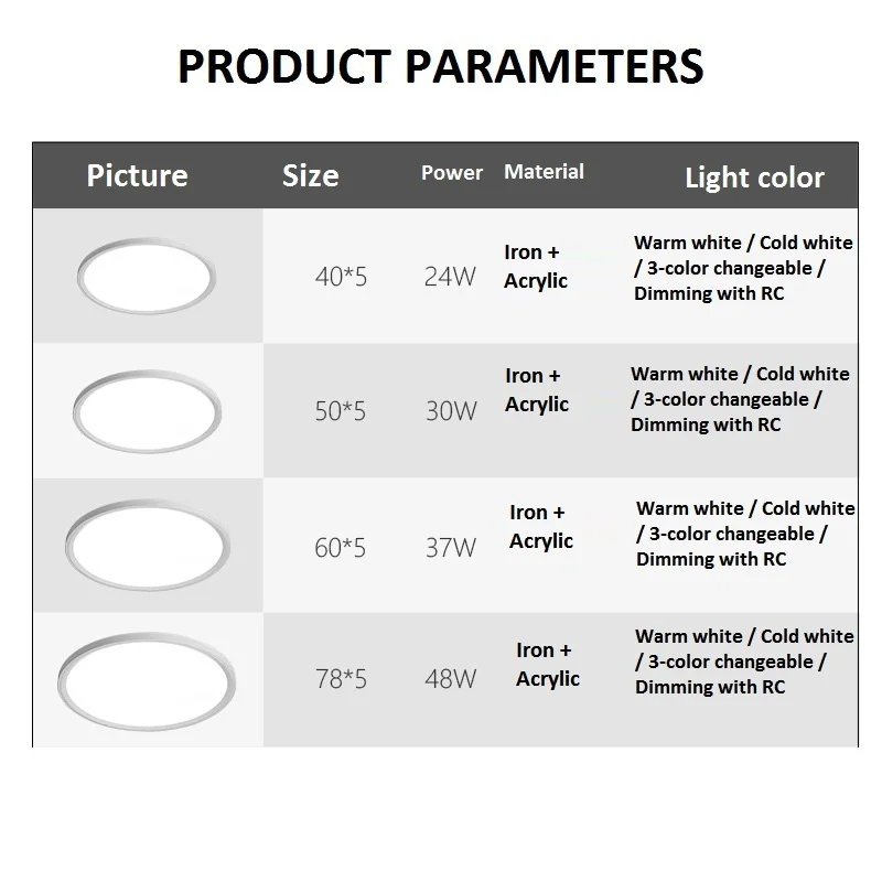 1. Здоровая и экологически чистая Краска: это безвредный лак, нетоксичный, безвредный и не раздражающий, экологически чистый и здоровый. 2. Устойчивость к высоким с высокой скоростью передачи защита глаз абажур: молочно-белый акриловый абажур, форма светильник передачи, высокая светильник с высоким коэффициентом пропускания, защита от ударов, антибликовое покрытие, защита от пыли, легкоочищающийся 3. Бортовой светильник ing: светильник радиус действия большой, теплый и мягкий, не повреждая глаза Размеры: Потребляемая мощность Диаметр: 40 см; Высота: 5 см 24 Вт Диаметр: 50 см Высота: 5 см 30 Вт Диаметр: 60 см Высота: 5 см 60 Вт Диаметр: 78 см Высота: 5 см 48 Вт Материал: железо + акриловый абажур Светильник источник света: светодиодный Применение: спальня/столовая/гостиная Если вы выбираете «затемнение с RC», это означает, что вы можете изменить цвет между (теплый белый/холодный белый/естественный белый светильник), и затемнить яркость RC 3 цвета Сменные (теплый белый/холодный светильник/натуральный белый) означает включить светильник в первый раз «теплый белый светильник», выключить его и включить его снова: «Холодный белый светильник», выключите его и включите снова «естественный белый» Посылка включает в себя: 1 потолочный светильник