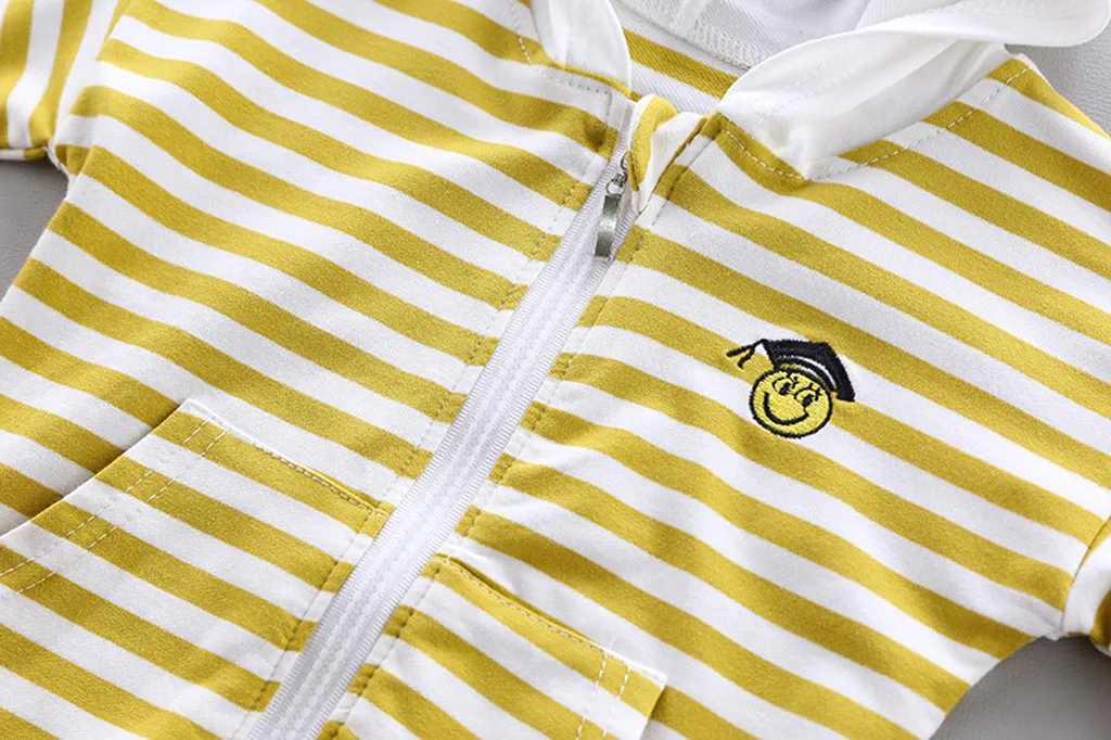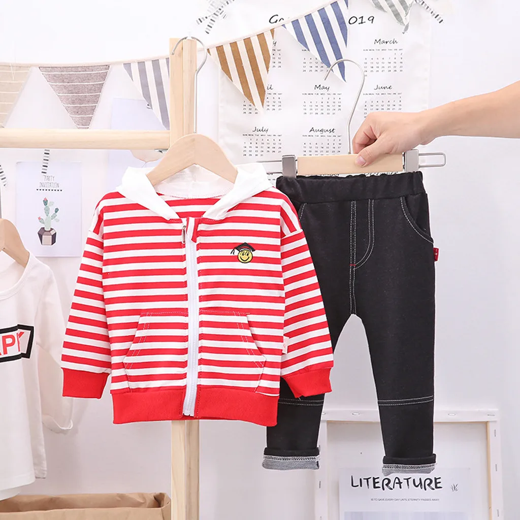 Коллекция 2019 года, осенне-зимняя модная одежда для маленьких мальчиков полосатый кардиган с капюшоном + джинсы