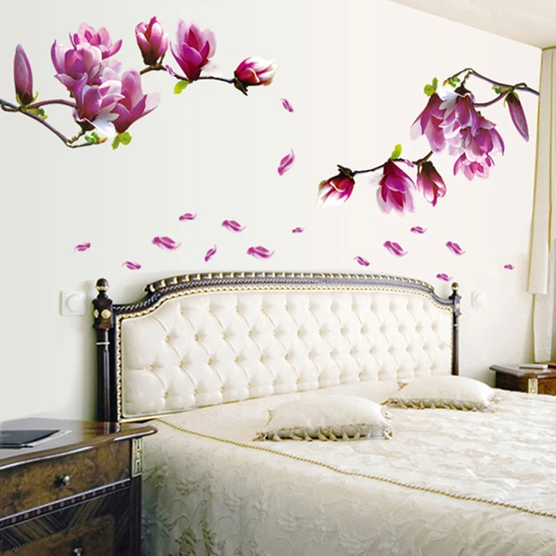 DIY настенные наклейки цветок магнолии наклейки ПВХ Водонепроницаемый декорация Фреска розовые обои домашнего декора гостиной в спальню