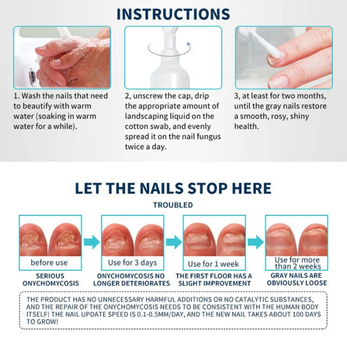 3. Не менее двух месяцев использования до тех пор, пока серые ногти не восстановят гладкое, розовое, блестящее здоровье.